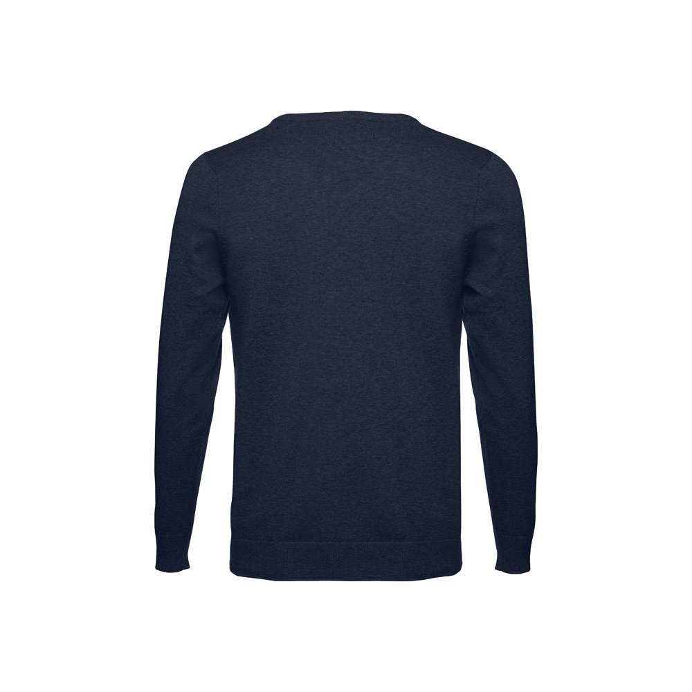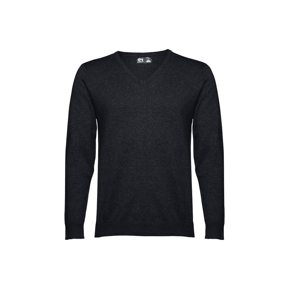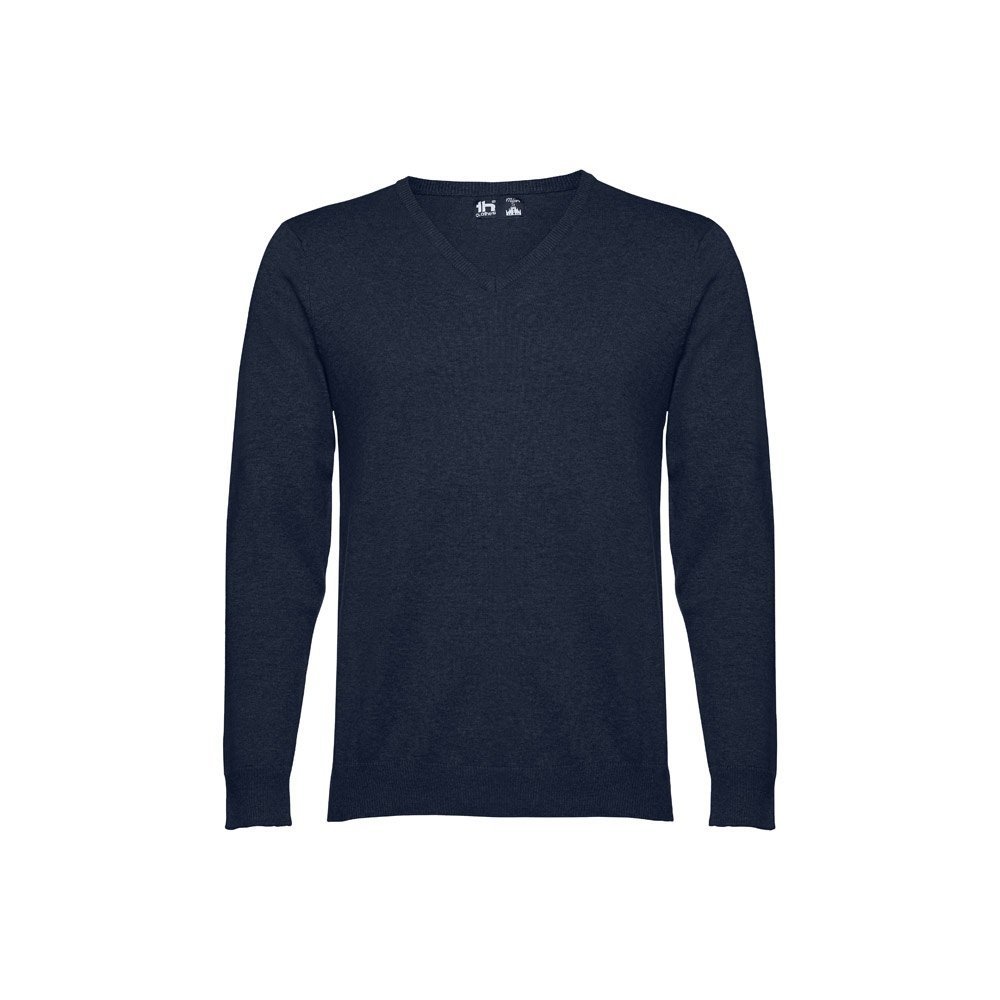 Maglione con scollo a" V" da uomo. 70% cotone e 30% poliammide (220 g/m²). Giracollo, polsini e parte inferiore a costine. Maniche inserite con fully-fashion.Taglie: S, M, L, XL, XXL
