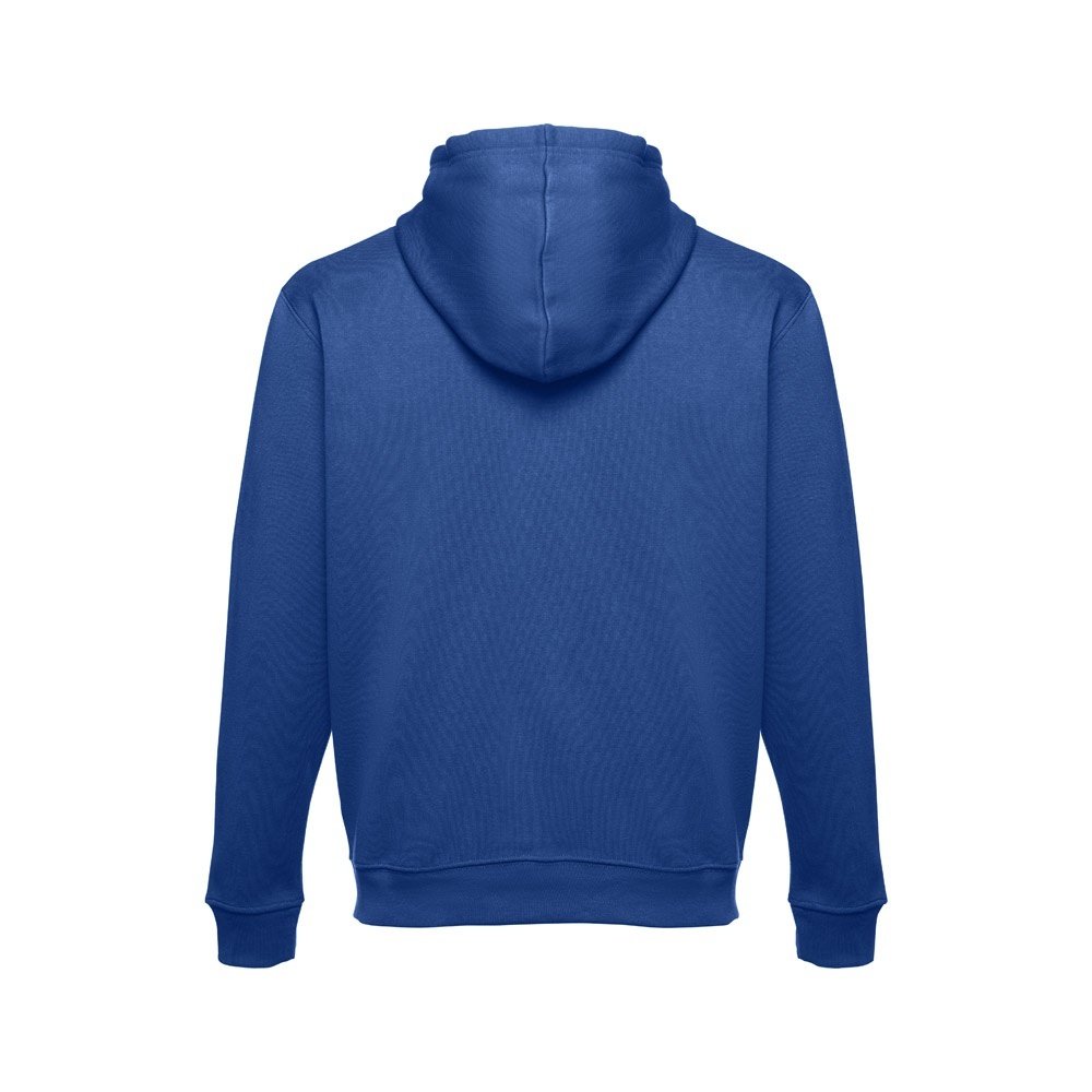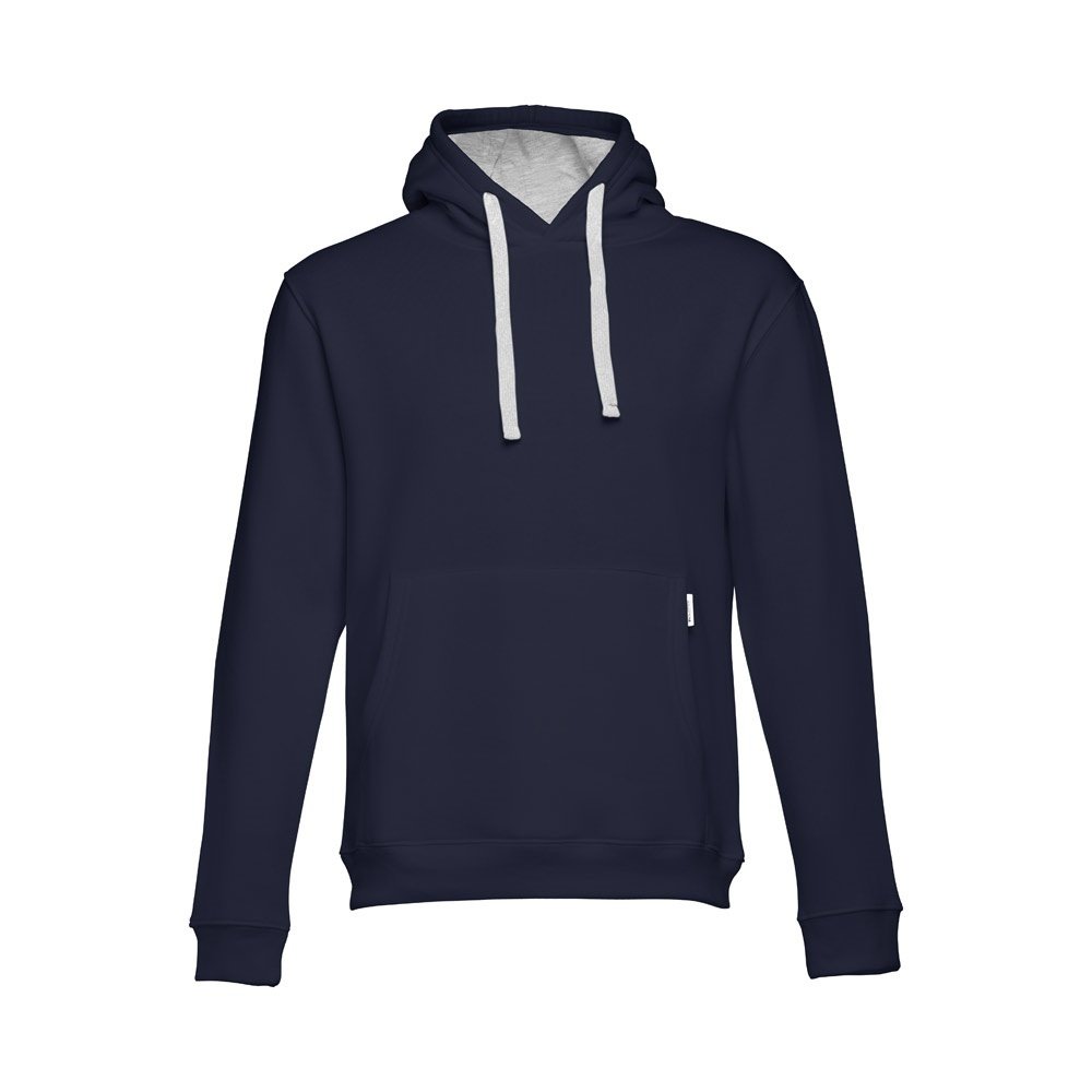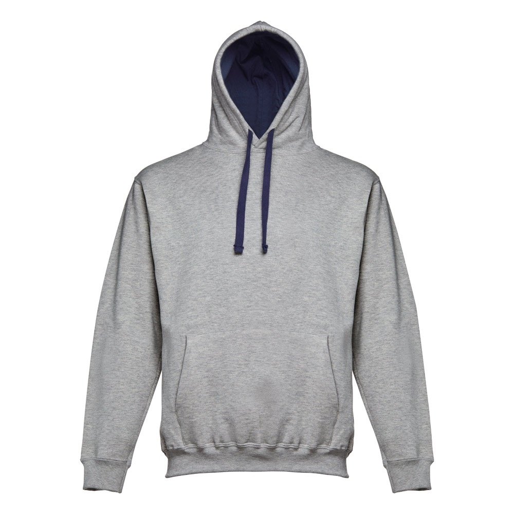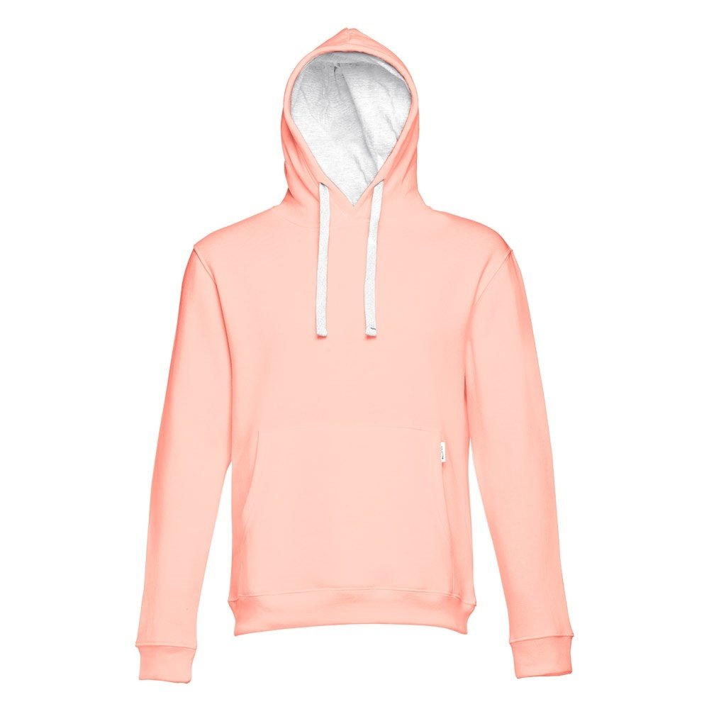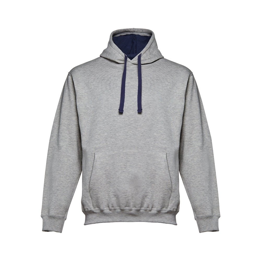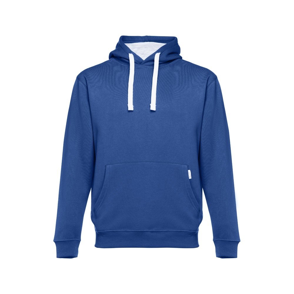 Felpa (unisex) in 50% cotone e 50% poliestere (320 g/m²) con interno spazzolato. Polsini e vita a costine 1x1, tasca a marsupio e cappuccio con cordoncini regolabili e con colore contrastato.Taglie: S, M, L, XL, XXL