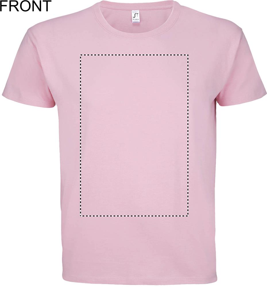 T-shirt personalizzate da uomo in 100% cotone semipettinato ringspun 190 g/m². Morbide, resistenti e perfette per aziende, eventi e promozione del brand. Stampa a colori disponibile su fronte, retro, lato cuore o maniche.