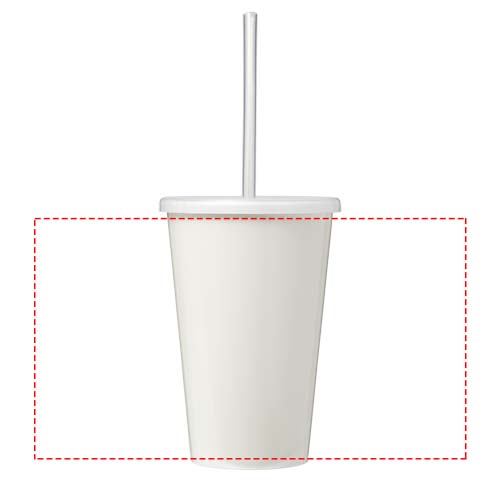 Bicchiere termico a doppia parete. Lo strato esterno del tumbler è realizzato in plastica riciclata. Bicchiere con design avvolgente a colori stampato sul prodotto, che lo rende resistente e di lunga durata. Fornito con una cannuccia in polietilene. Capacità di 350 ml. Prodotto nel Regno Unito. Confezionato in un sacchetto compostabile. Senza BPA.