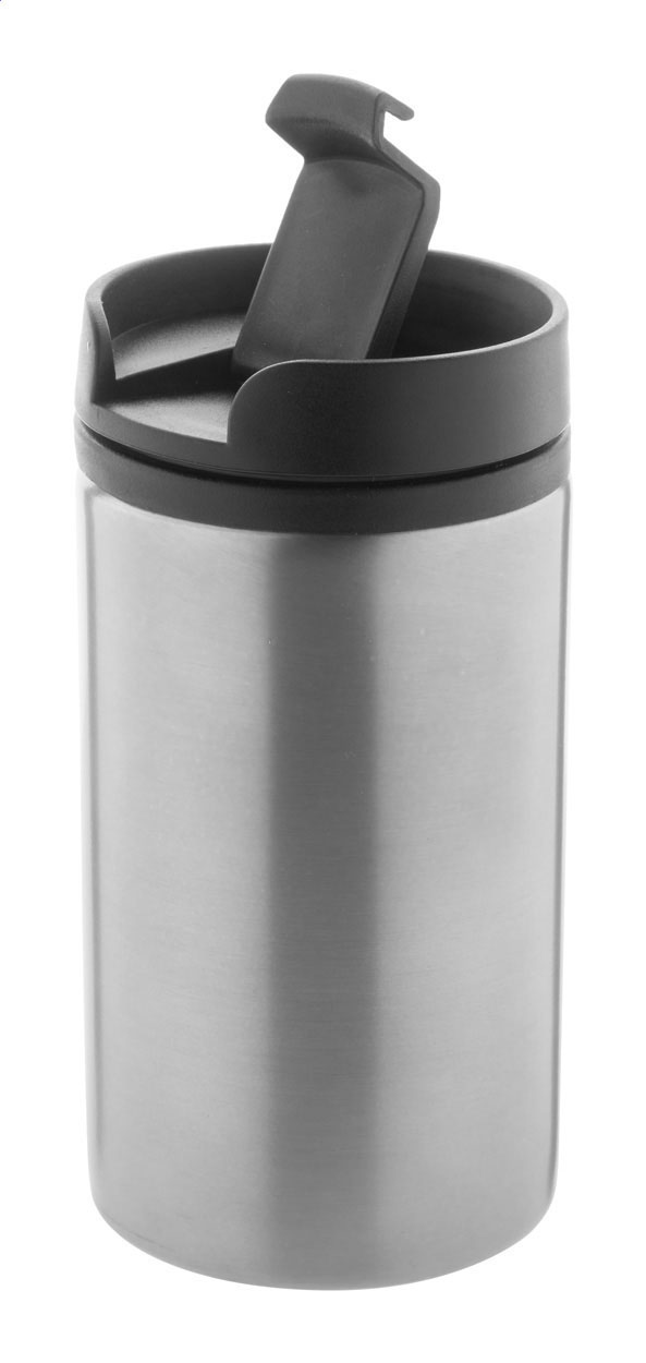 Bicchiere termico a doppia parete in acciaio riciclato da 250ml. con interno e coperchio erogatorein plastica PP.