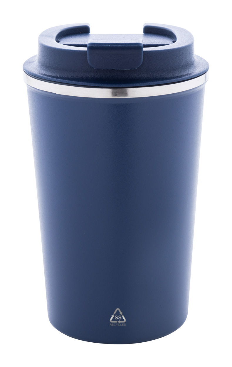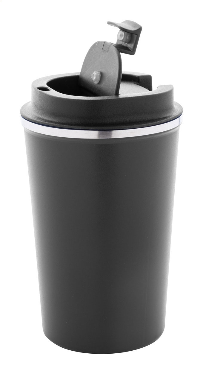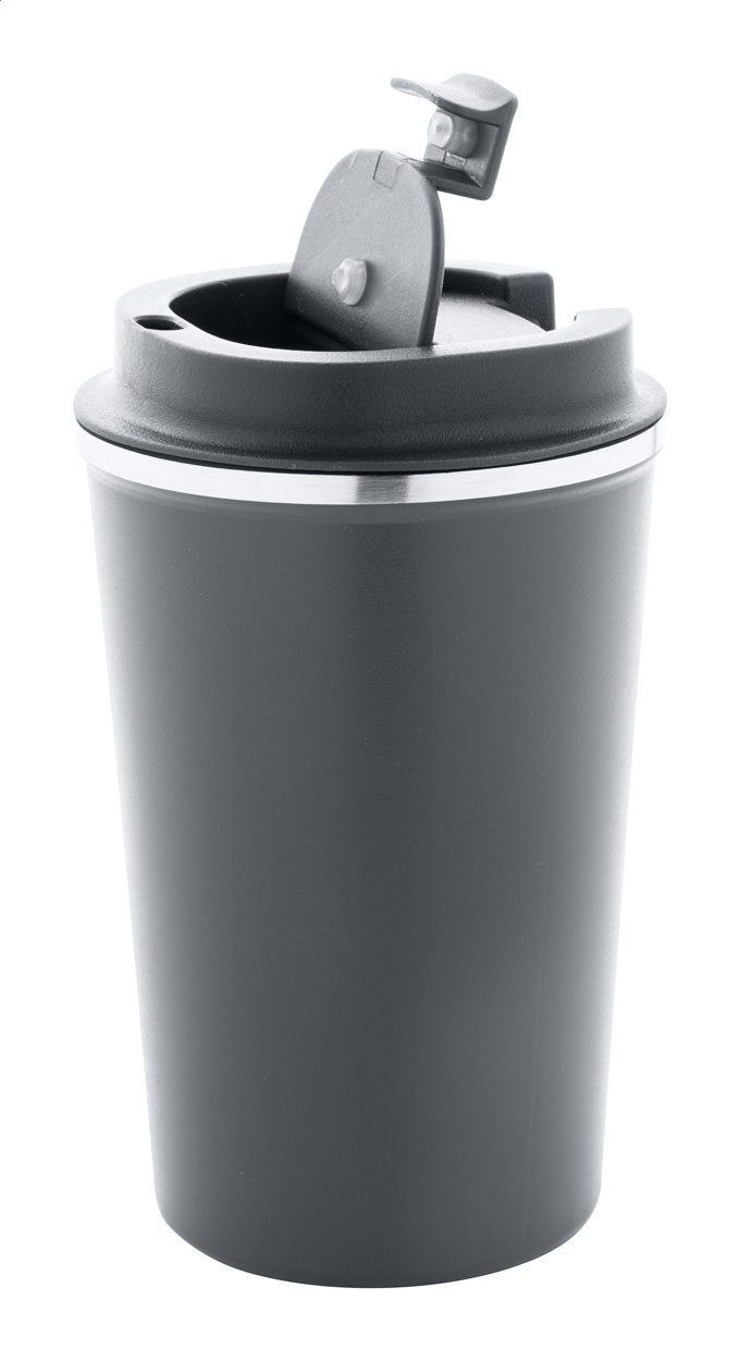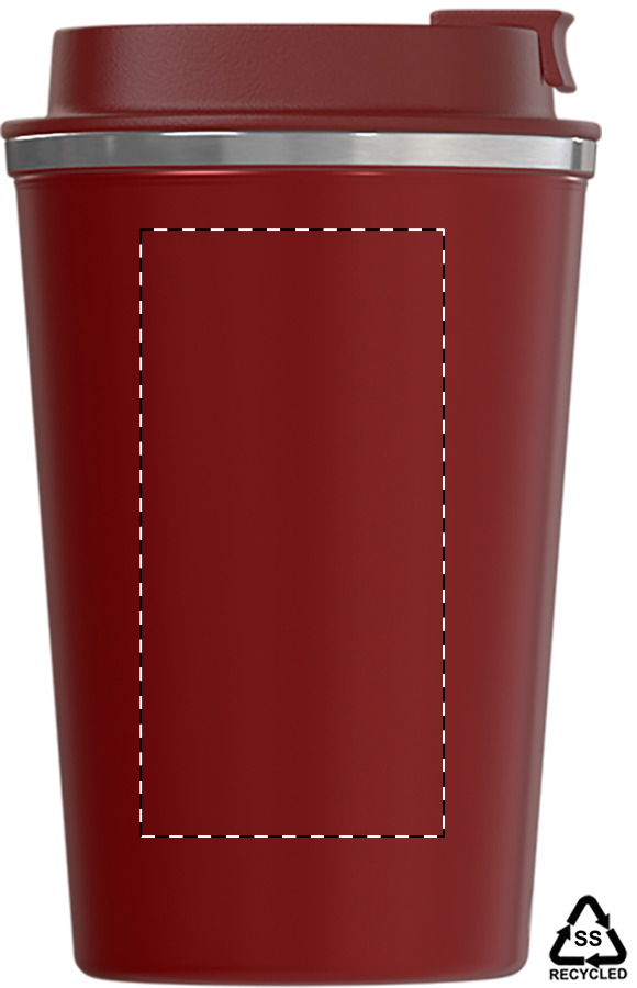 Bicchiere termico a doppia parete in acciaio riciclato con capacità di 350ml. e coperchio erogatore in PP.