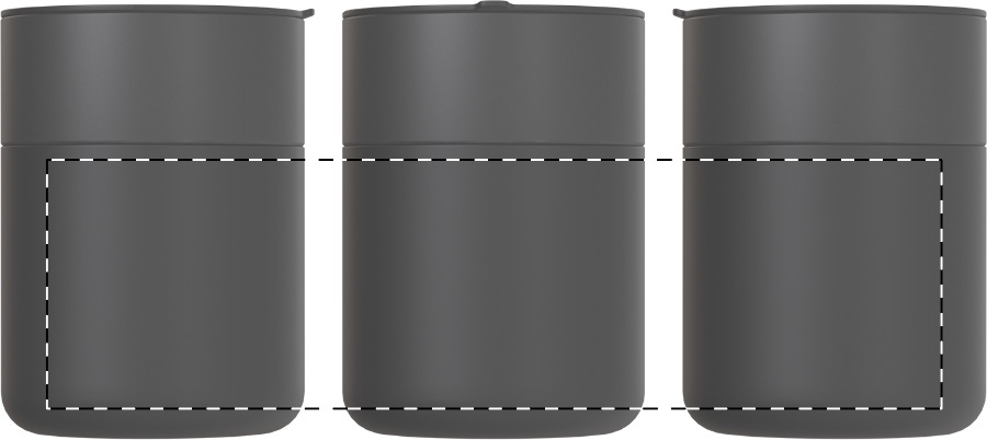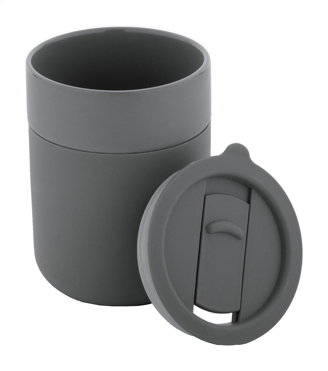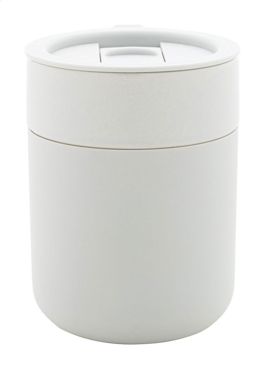 Tazza d'asporto da 300ml. in ceramica rivestita con silicone e coperchio in plastica PP.