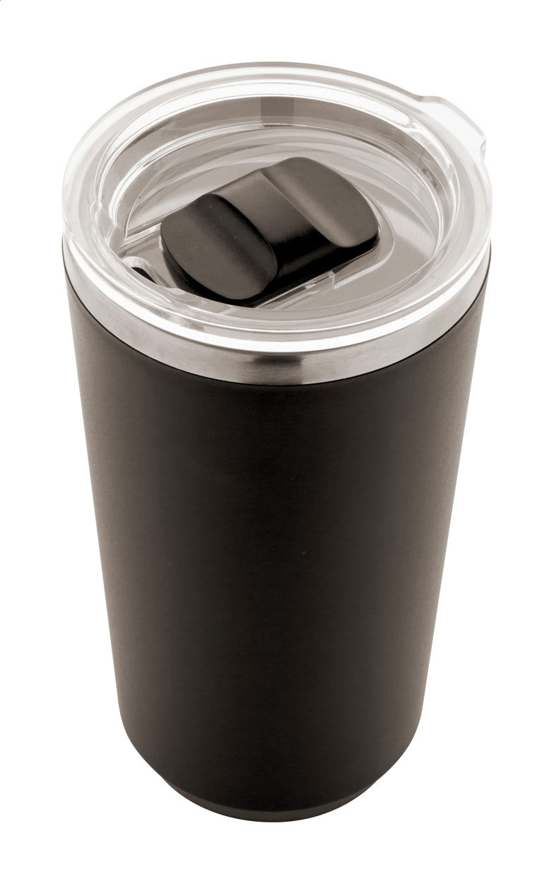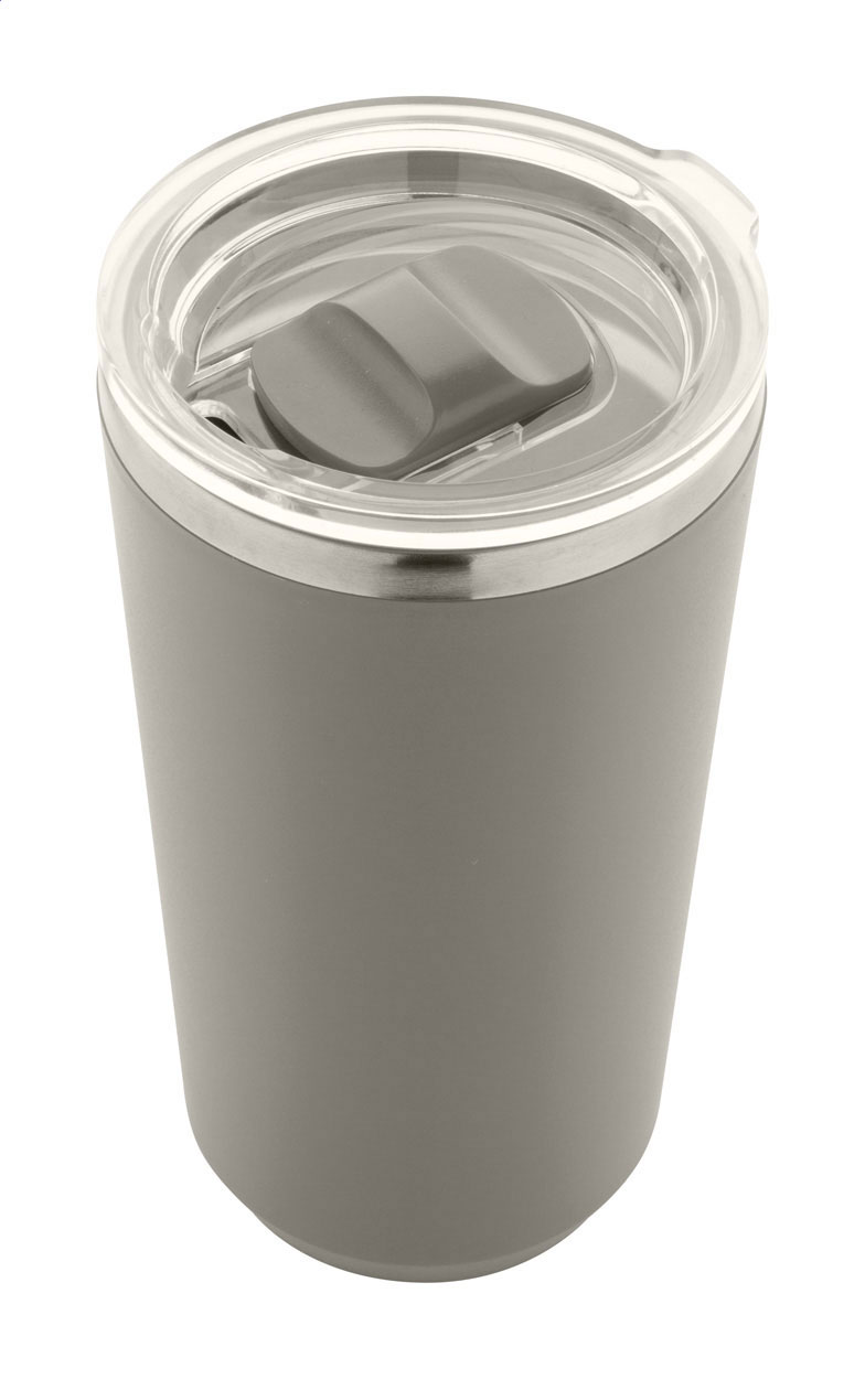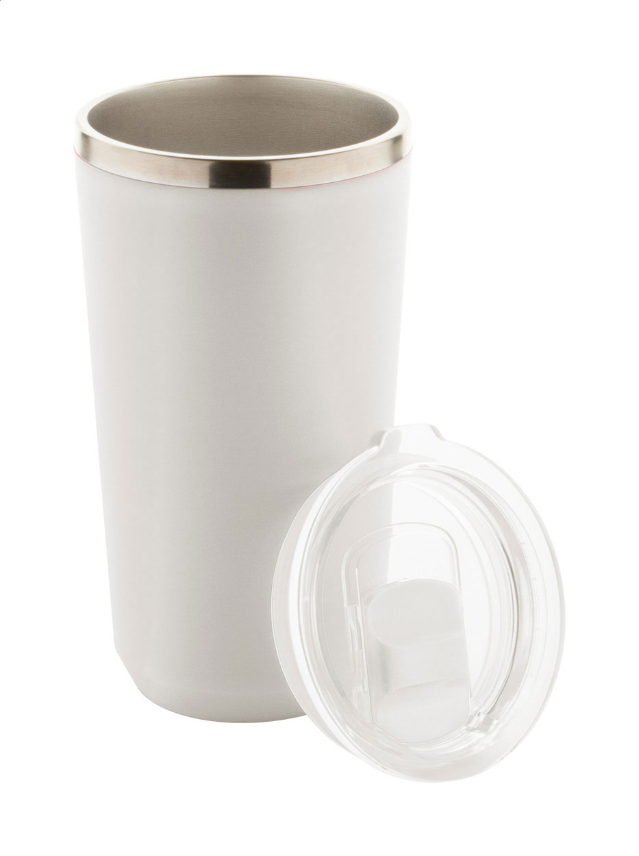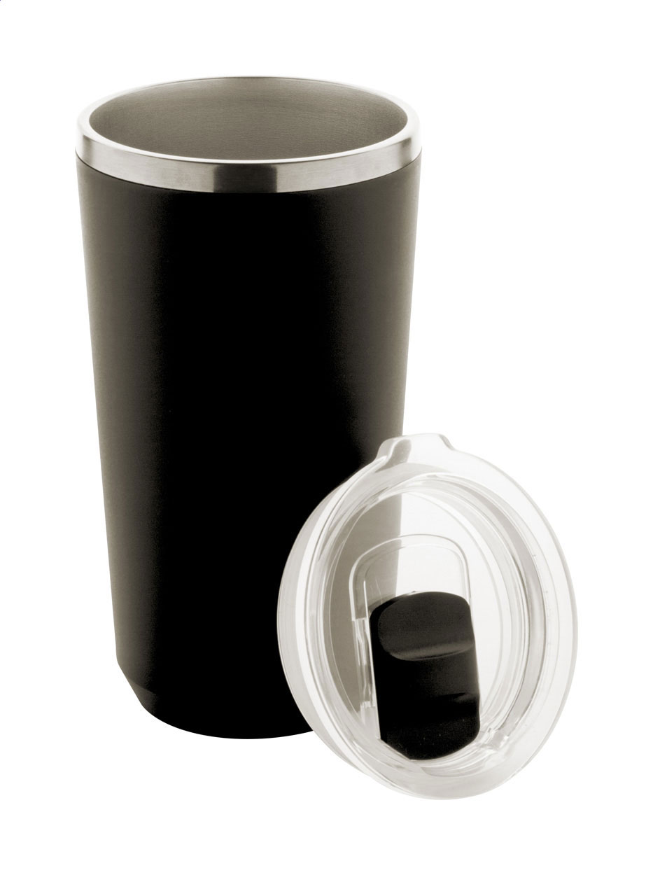 Mug termico da 500ml. in acciaio a doppia parete con tappo erogatore e rivestimento in plastica PP.