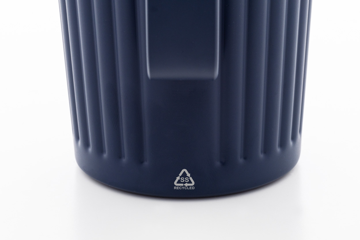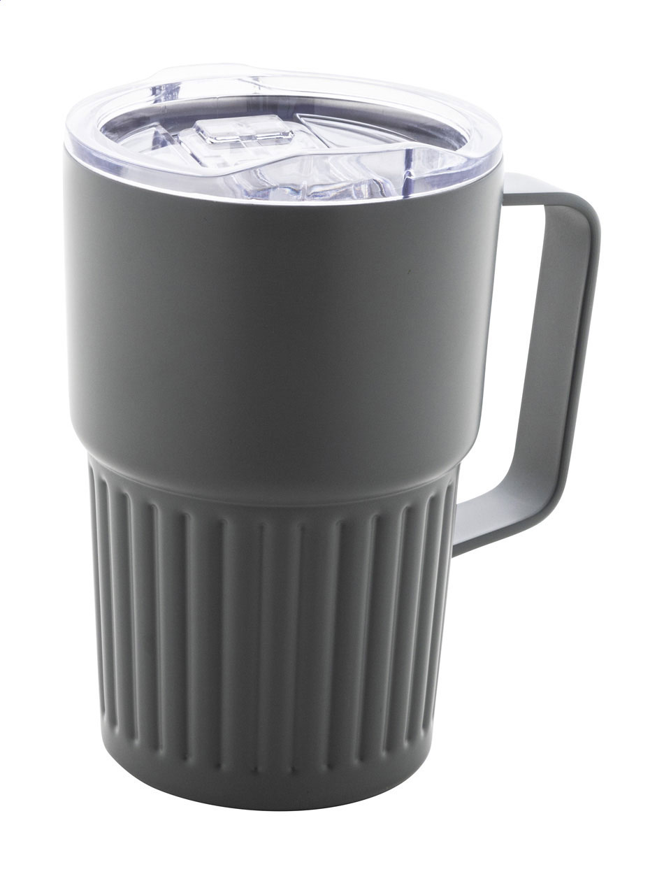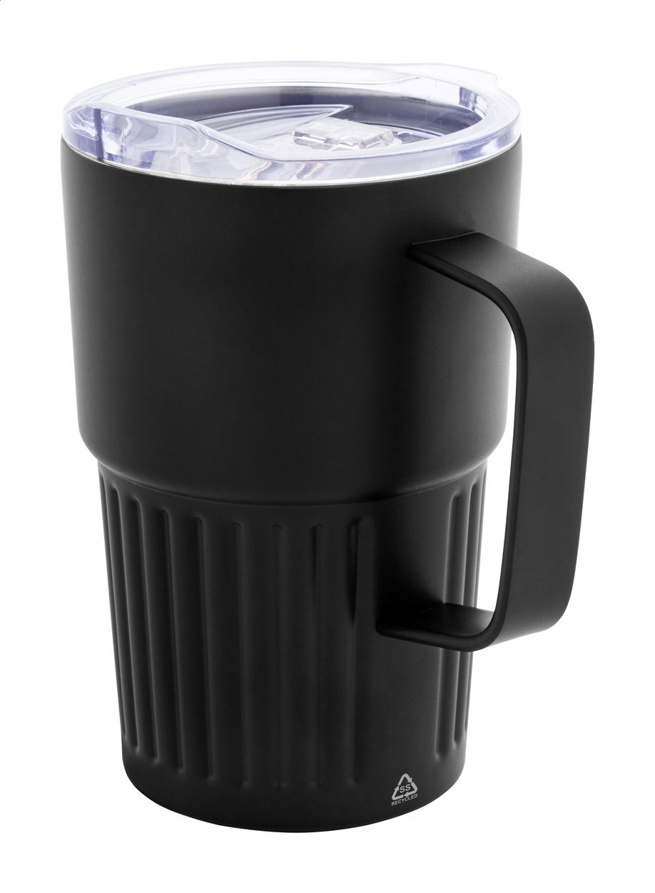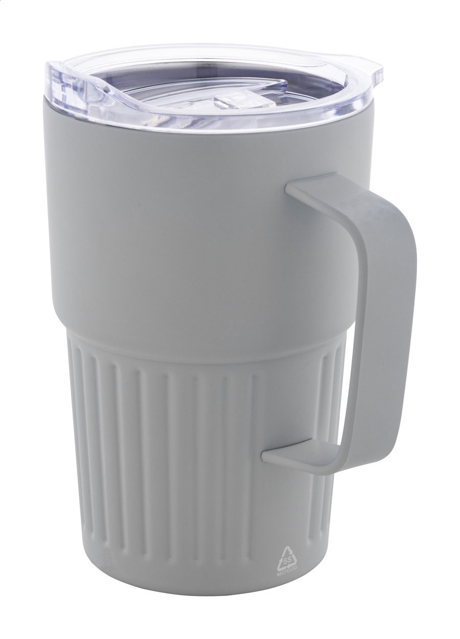 Tazza termica a doppia parete in acciaio inox riciclato da 470 ml. con coperchio in plastica ABS.