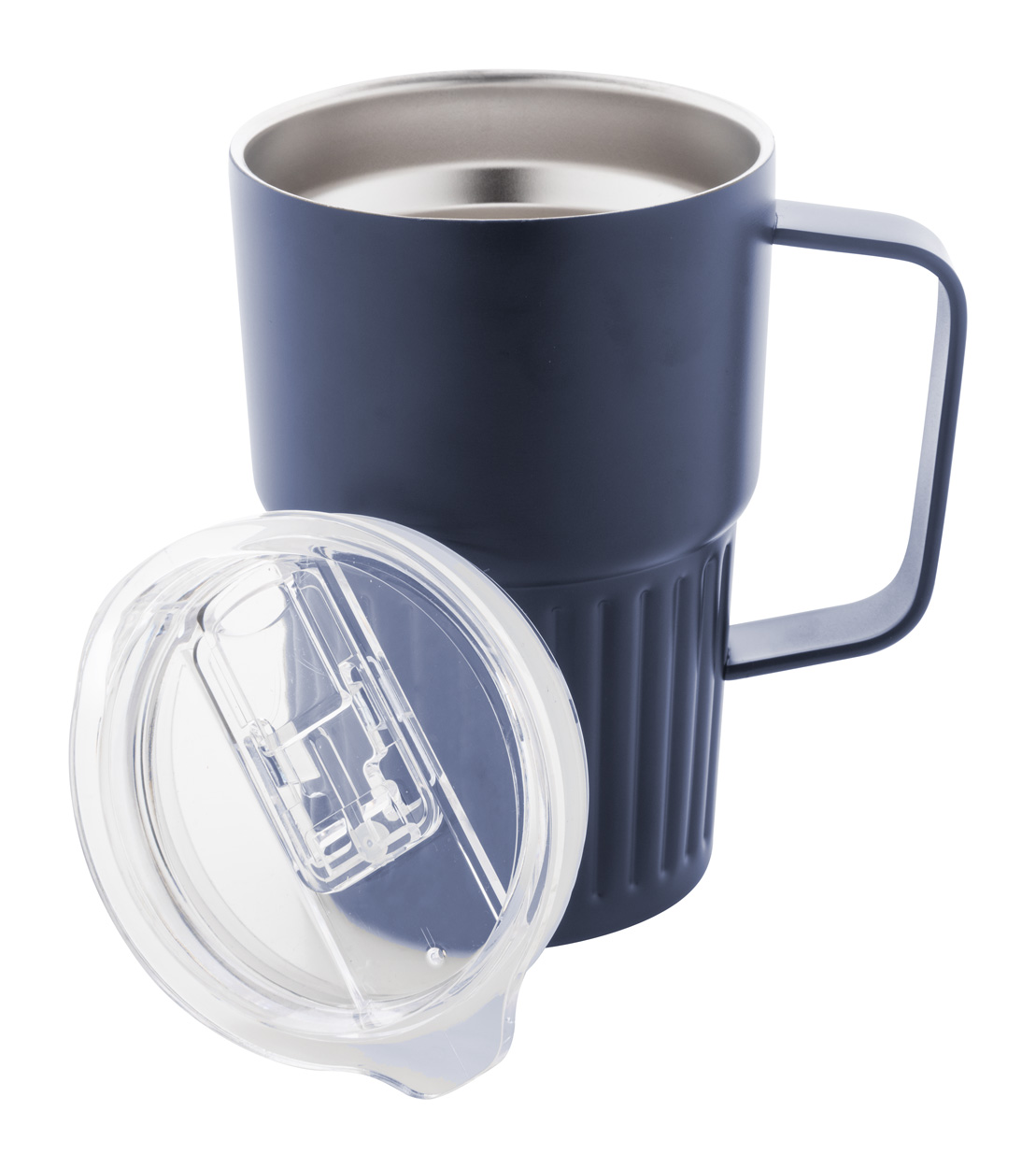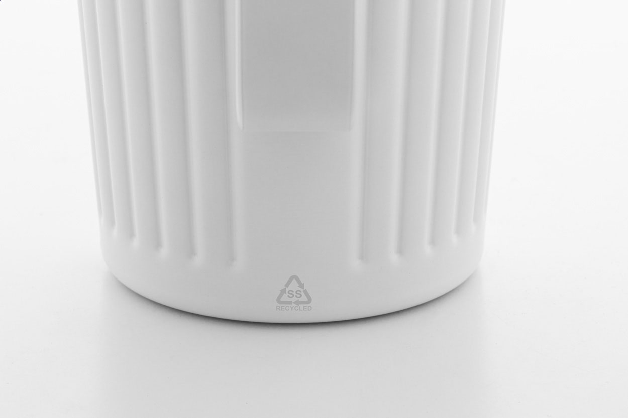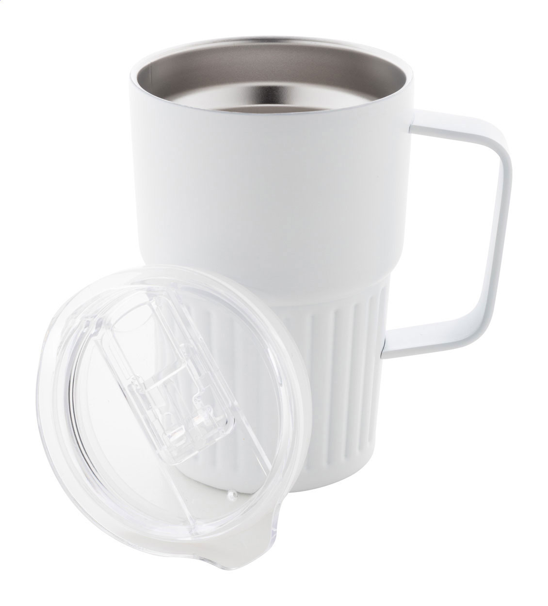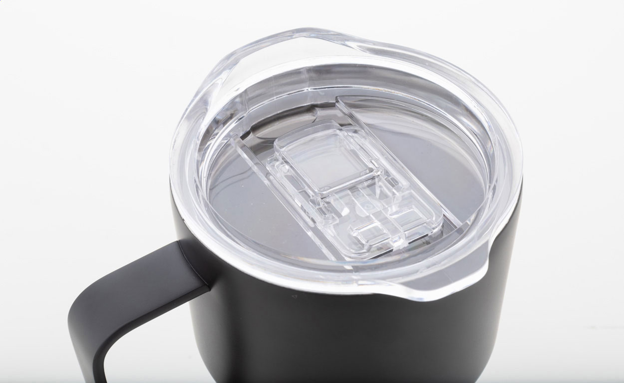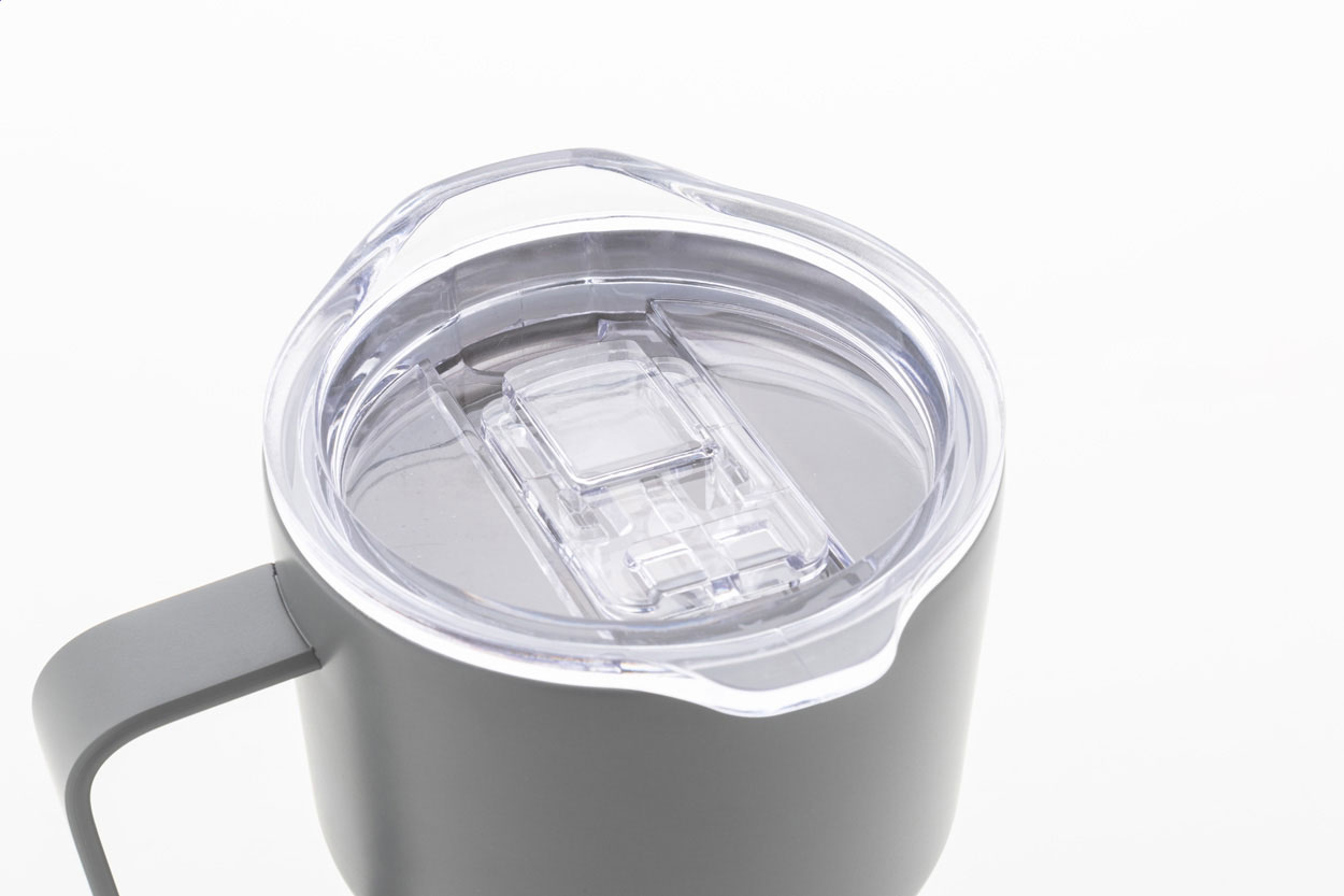 Tazza termica a doppia parete in acciaio inox riciclato da 470 ml. con coperchio in plastica ABS.