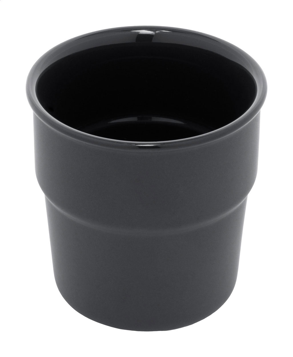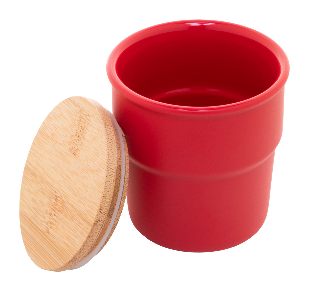 Bicchiere da 240ml. in ceramica di alta qualità con coperchio in bambù. Con finitura esterna opaca e interna lucida. Confezione in scatola di cartoncino bianco.