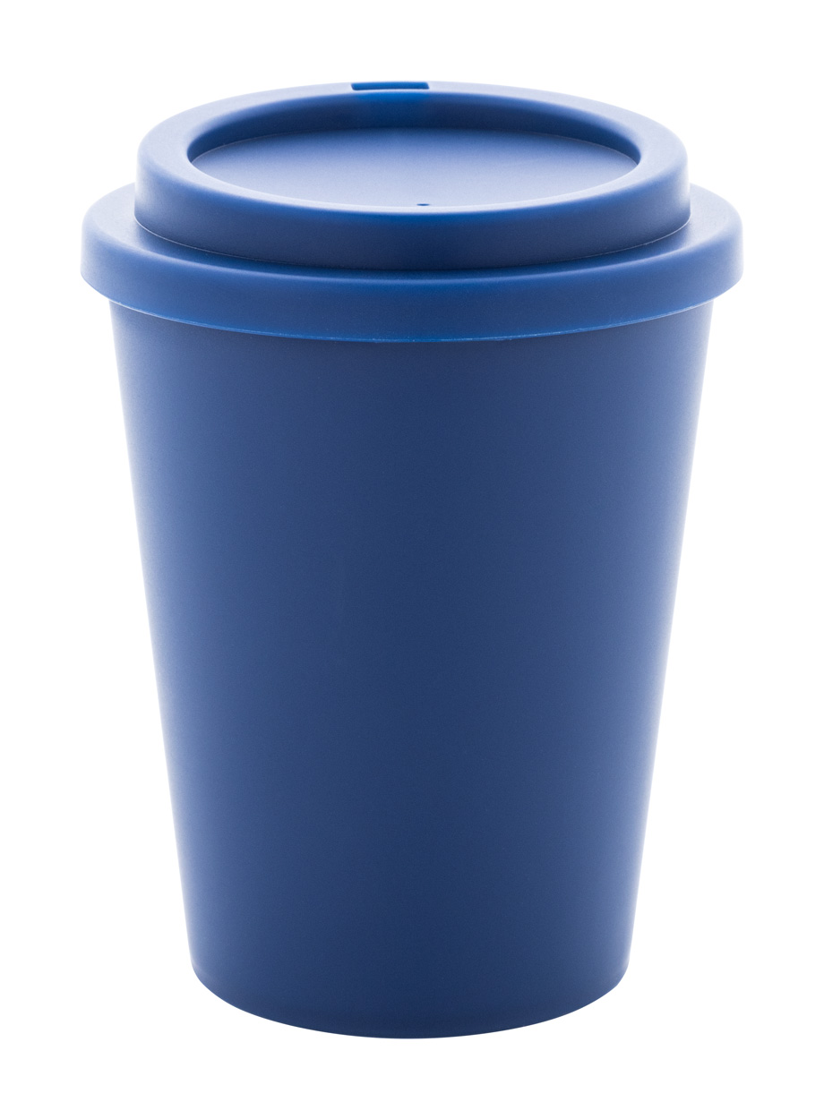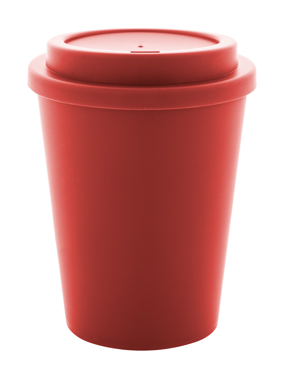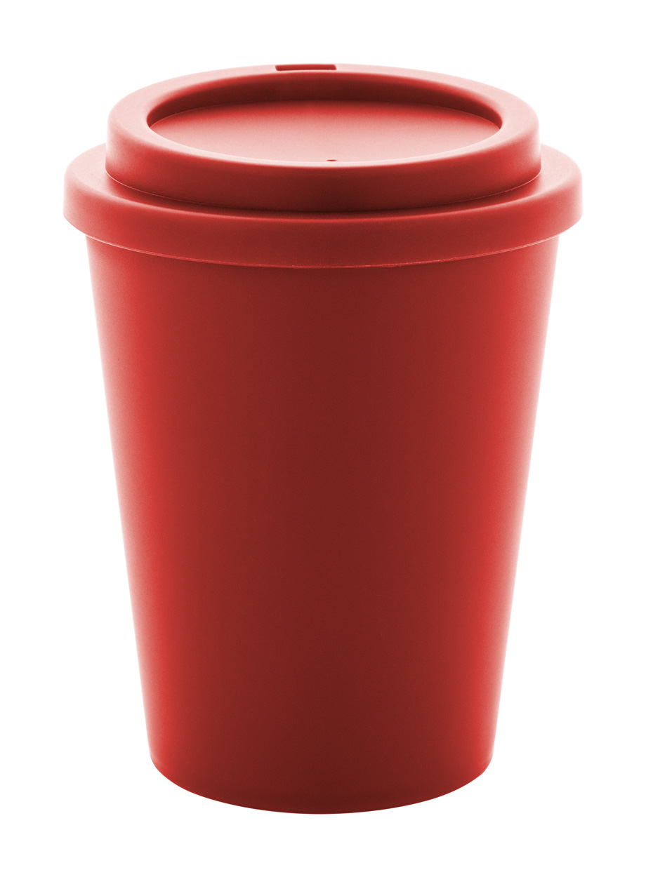 Bicchiere termico a doppia parete in plastica PP con capacità di 300ml. e coperchio erogatore.