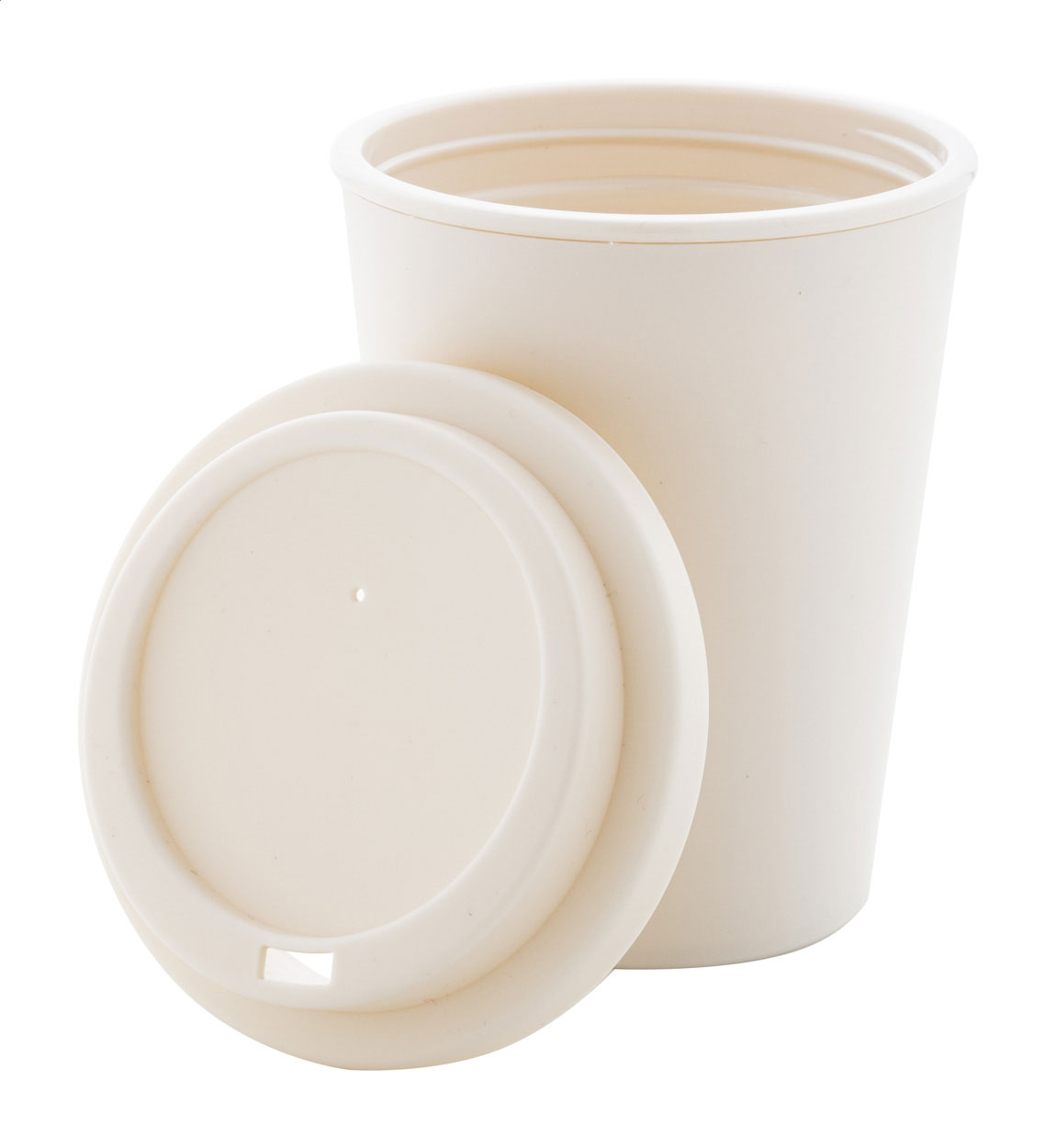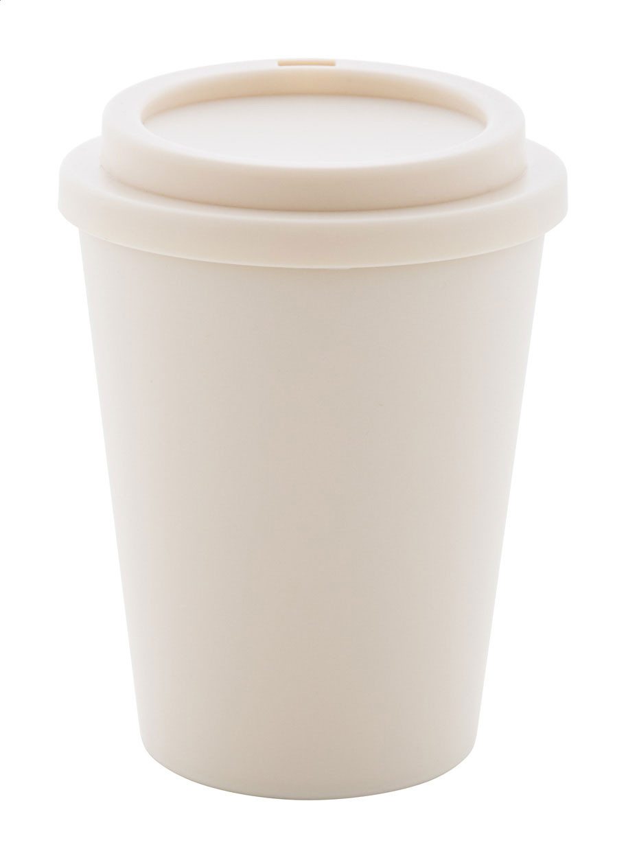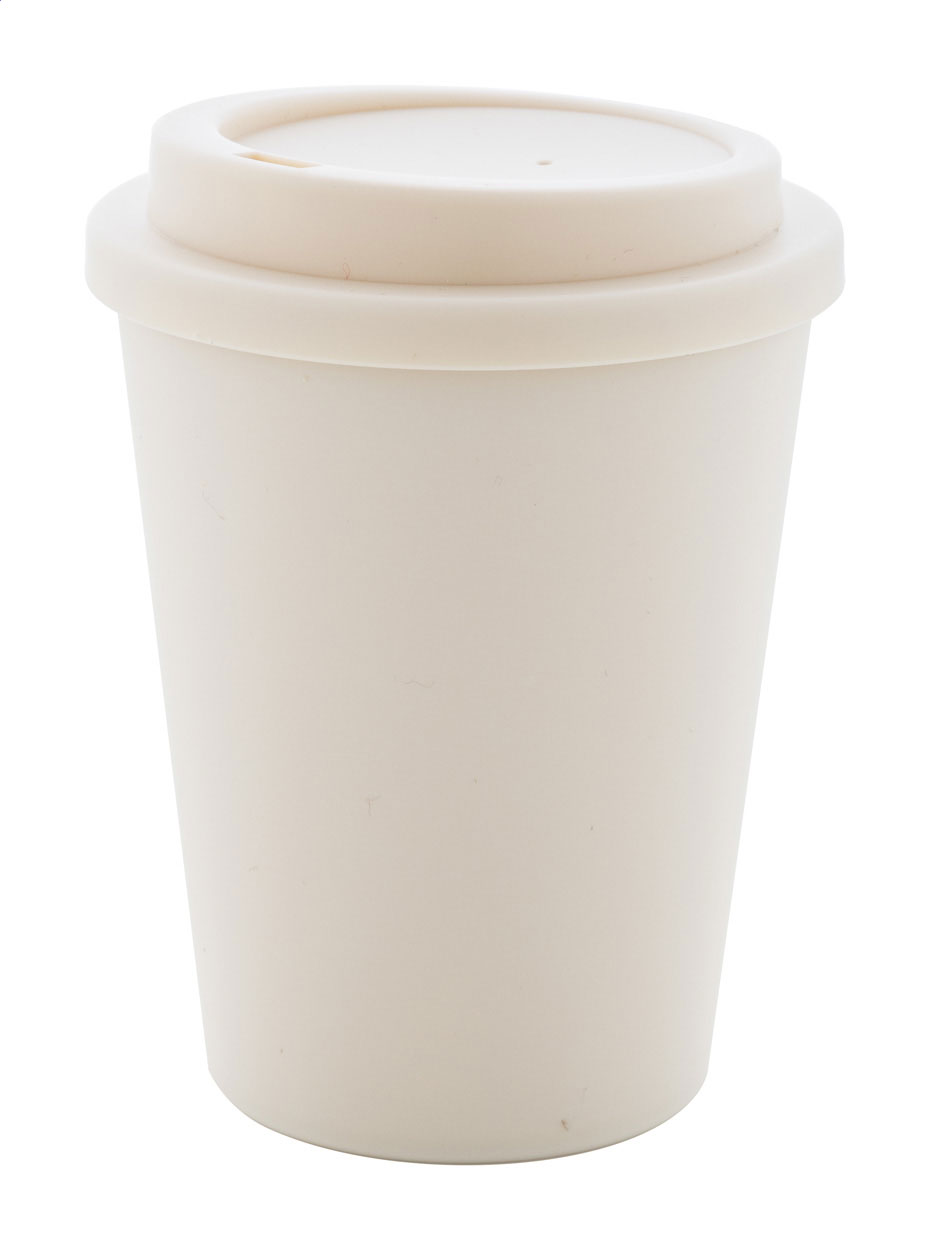 Bicchiere termico a doppia parete in plastica PP con capacità di 300ml. e coperchio erogatore.