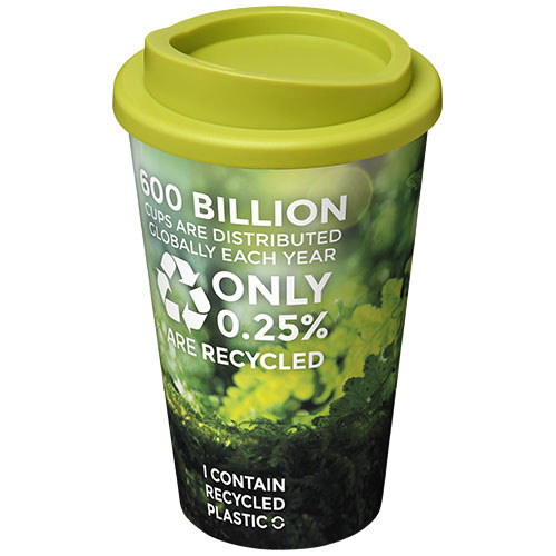 Bicchiere termico a doppia parete con coperchio a vite. Lo strato esterno del tumbler è realizzato in plastica riciclata. Bicchiere con design avvolgente a colori stampato sul prodotto, che lo rende resistente e di lunga durata. A norma EN12875-1, lavabile in lavastoviglie e adatto al microonde. Capacità di 350 ml. Il bicchiere è completamente riciclabile. Combinate i colori per creare la vostra tazza perfetta. Prodotto nel Regno Unito. Confezionato in un sacchetto compostabile. Senza BPA.