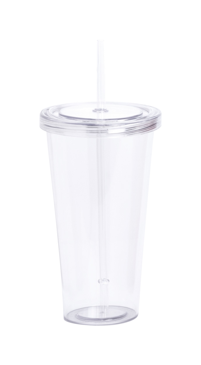 Bicchiere da 750ml. in plastica trasparente con cannuccia.