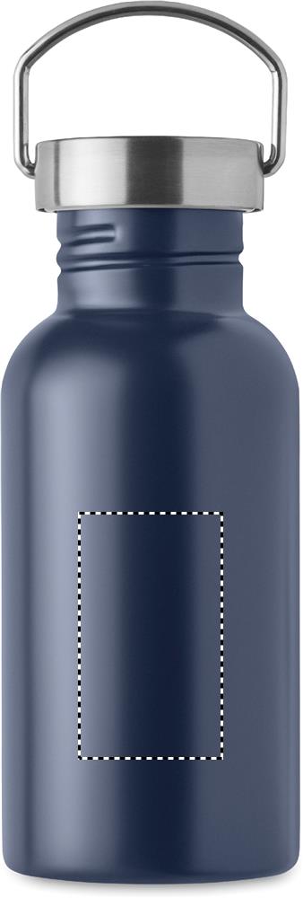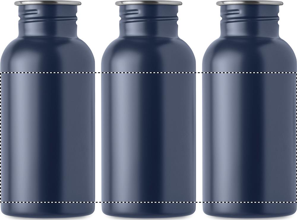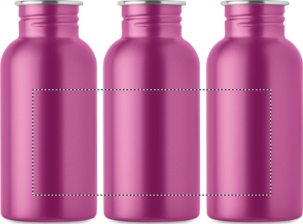 Borraccia singolo strato in acciaio inox riciclato (90% acciaio inox riciclato e 10% acciaio inox) con coperchio e manico. Senza perdite. Capacità: 500 ml.