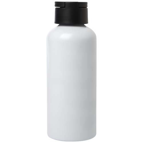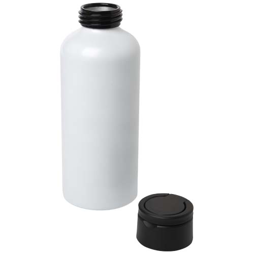 Borraccia in alluminio riciclato certificato RCS in design elegante. Dispone di un coperchio in plastica riciclata dotato di una pratico anello per il trasporto. Leggera e facile da trasportare. Capacità: 600 ml.