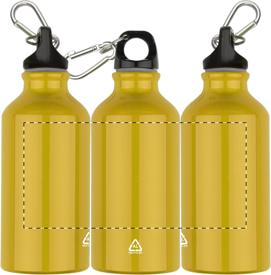 Borraccia da 400 ml con moschettone in alluminio riciclato.