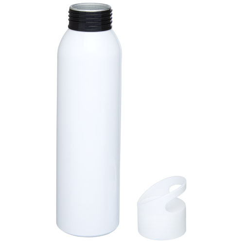Borraccia sportiva, realizzata in alluminio, un materiale che la rende leggera ma al contempo resistente. Il meccanismo a vite assicura che il coperchio si apra e si chiuda senza problemi ed è inoltre dotata di una maniglia integrata per un trasportarla facilmente. La borraccia è a parete singola e può contenere fino a 650 ml di bevande. Adatta alla tasca laterale della maggior parte degli zaini e alla maggior parte dei porta bicchieri dell'auto.