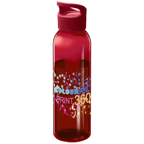 Borraccia sportiva trasparente Sky realizzata in Eastman Tritan™, materiale che rende questa bottiglia senza BPA, leggera, durevole e resistente agli urti. La borraccia è a parete singola, può contenere fino a 650 ml di liquido ed è adatta ad essere trasportata nella tasca laterale della maggior parte degli zaini, o ad essere inserita nella maggior parte dei porta bicchieri per auto. Il tappo a vite assicura una facile apertura e chiusura, ed è dotato di una maniglia di trasporto incorporata.