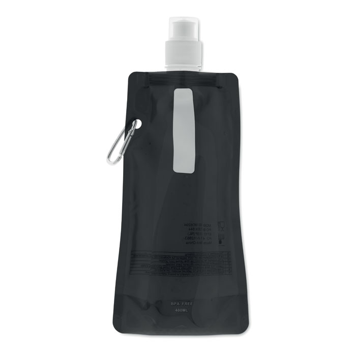 Borraccia pieghevole in PET, BPA free con moschettone in alluminio. 480ml. Antigoccia.