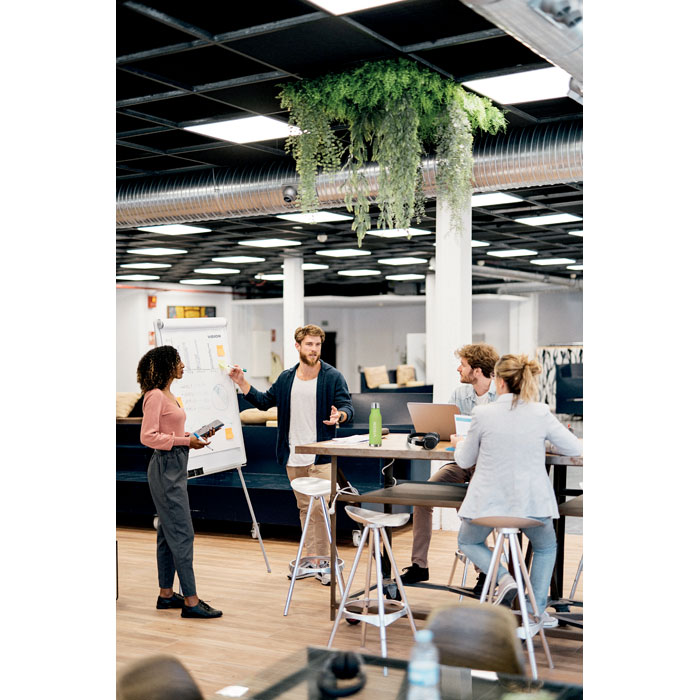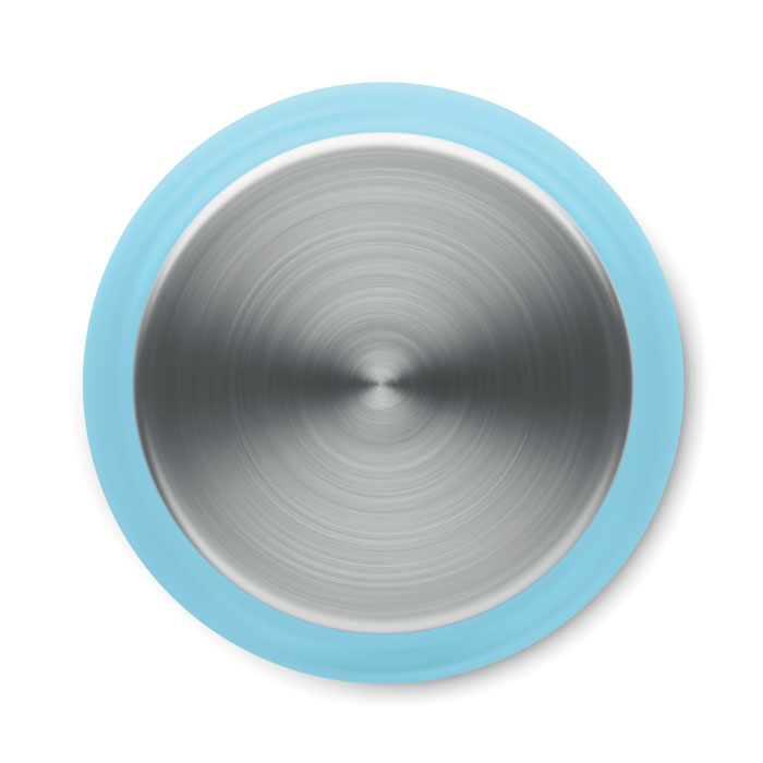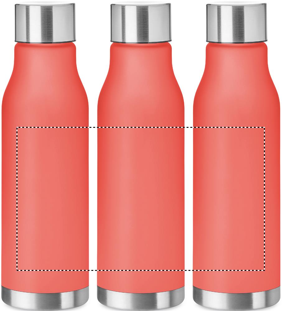 Borraccia in RPET in acciaio inossidabile e finitura gommata con interno in RPET e anello in silicone. BPA free. Anti goccia. Capacità 600ml. Non adatto a bevande gassate, alcoliche e a base di latte.Antigoccia.