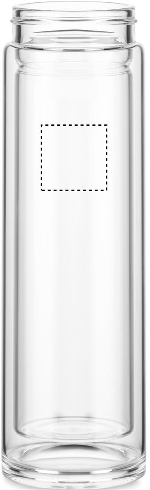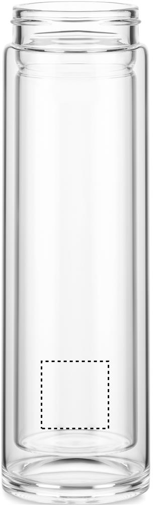 Borraccia doppio strato in vetro borosilicato e coperchio in bamboo con infusore per il tè. Capacità: 400 ml.