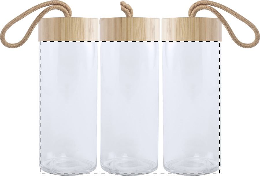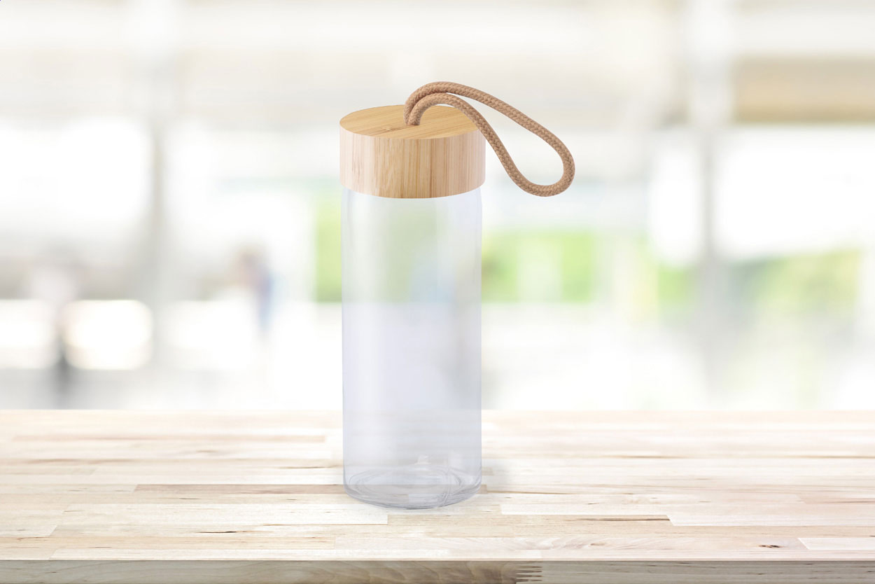 Borraccia da 430ml. in vetro con tappo in bambù e confezione regalo. Non adatta per l'utilizzo con bevande gassate.