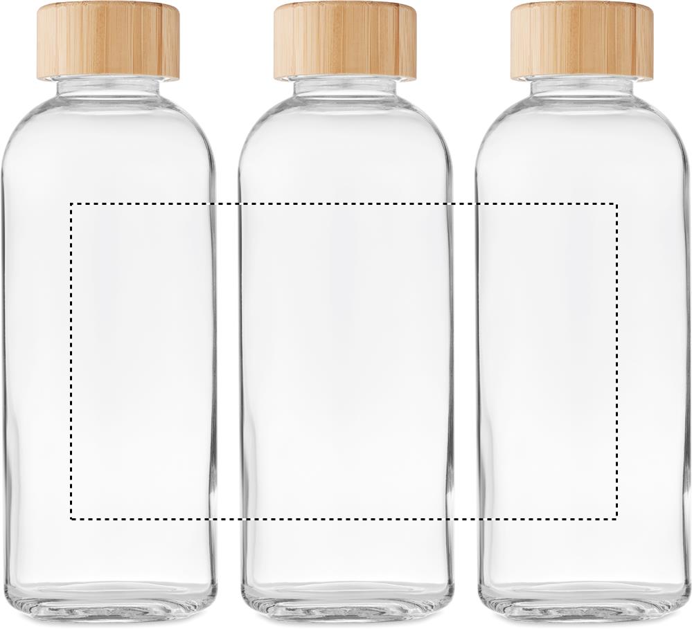 Bottiglia in vetro con coperchio di bamboo. Capacità 650 ml. Senza perdite.