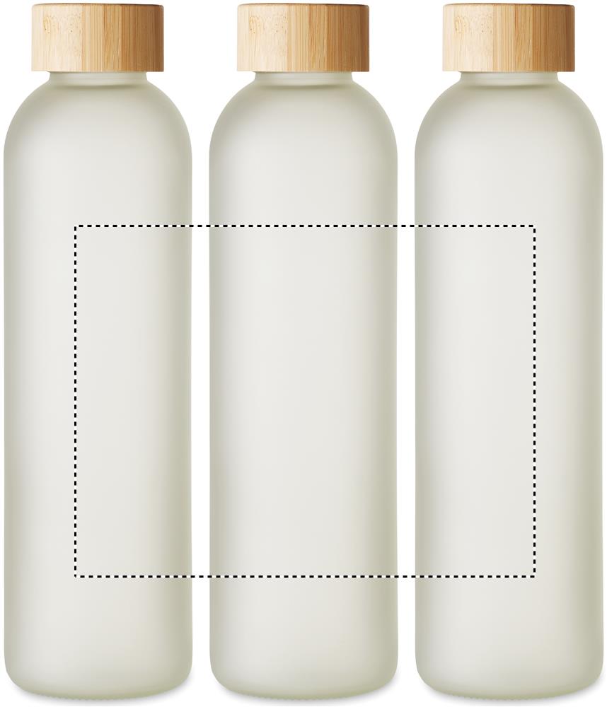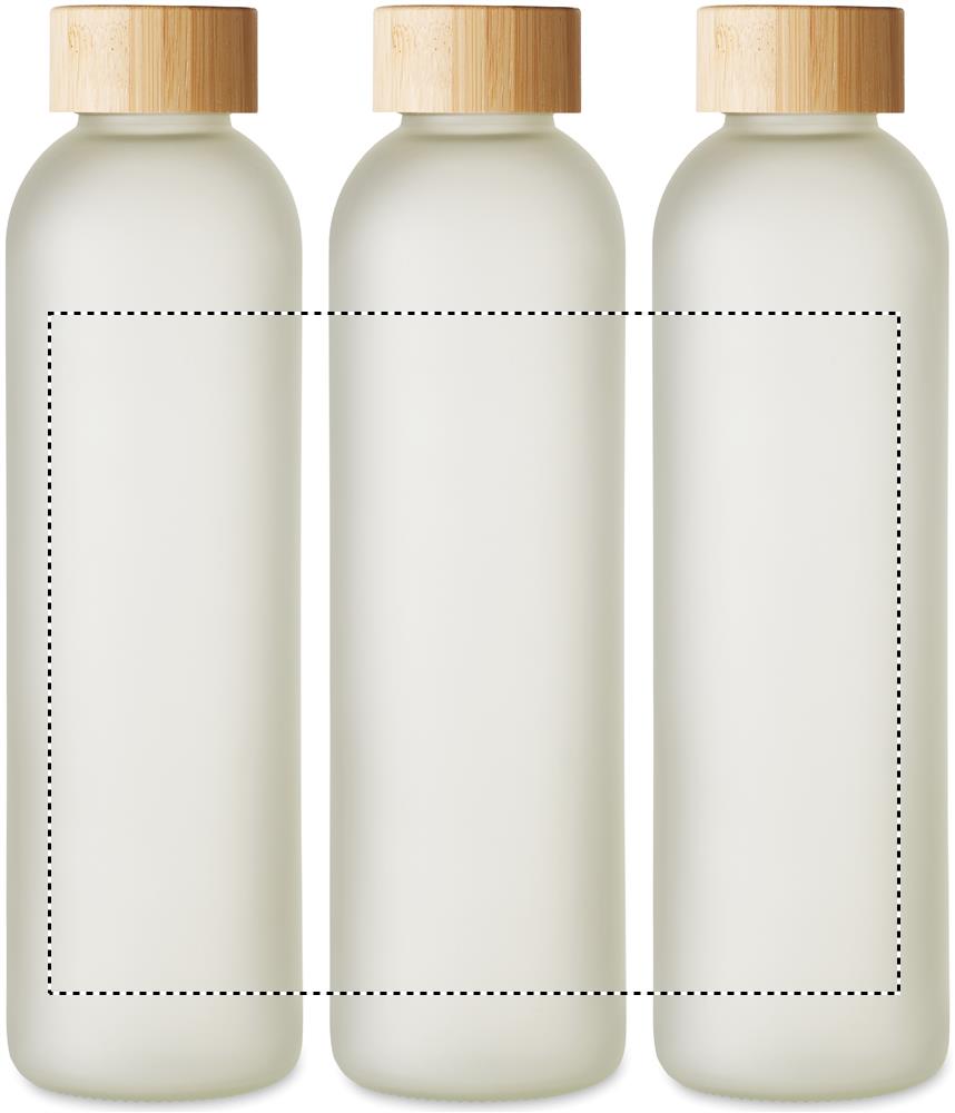 Borraccia in vetro con rivestimento speciale per la sublimazione e coperchio in bambù. Capacità: 650 ml.