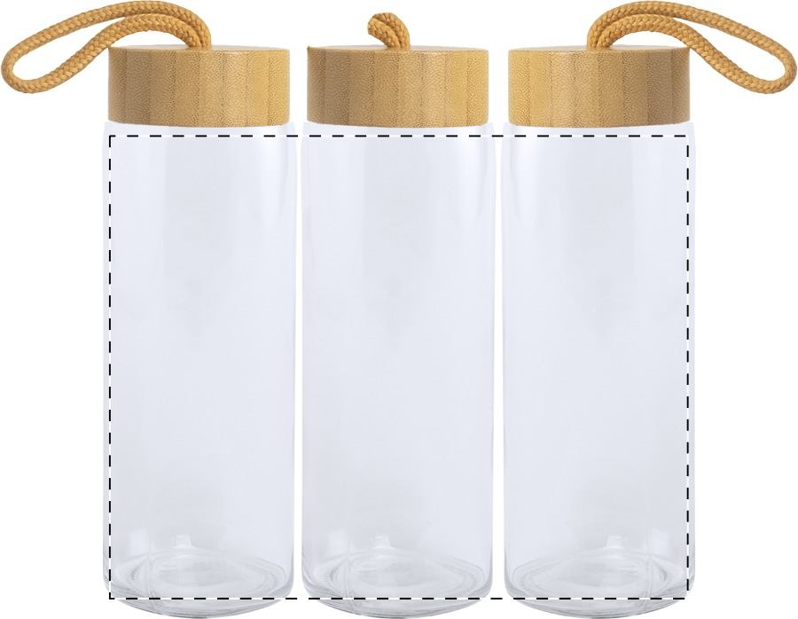 Borraccia da 530ml. in vetro con tappo in bambù e rivestimento in neoprene bianco. Non adatta per l'utilizzo con bevande gassate.