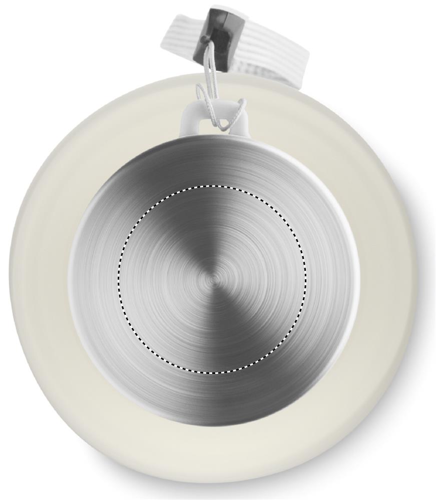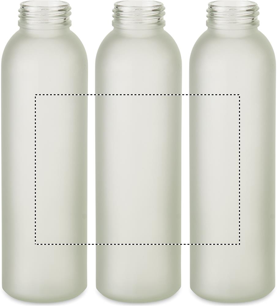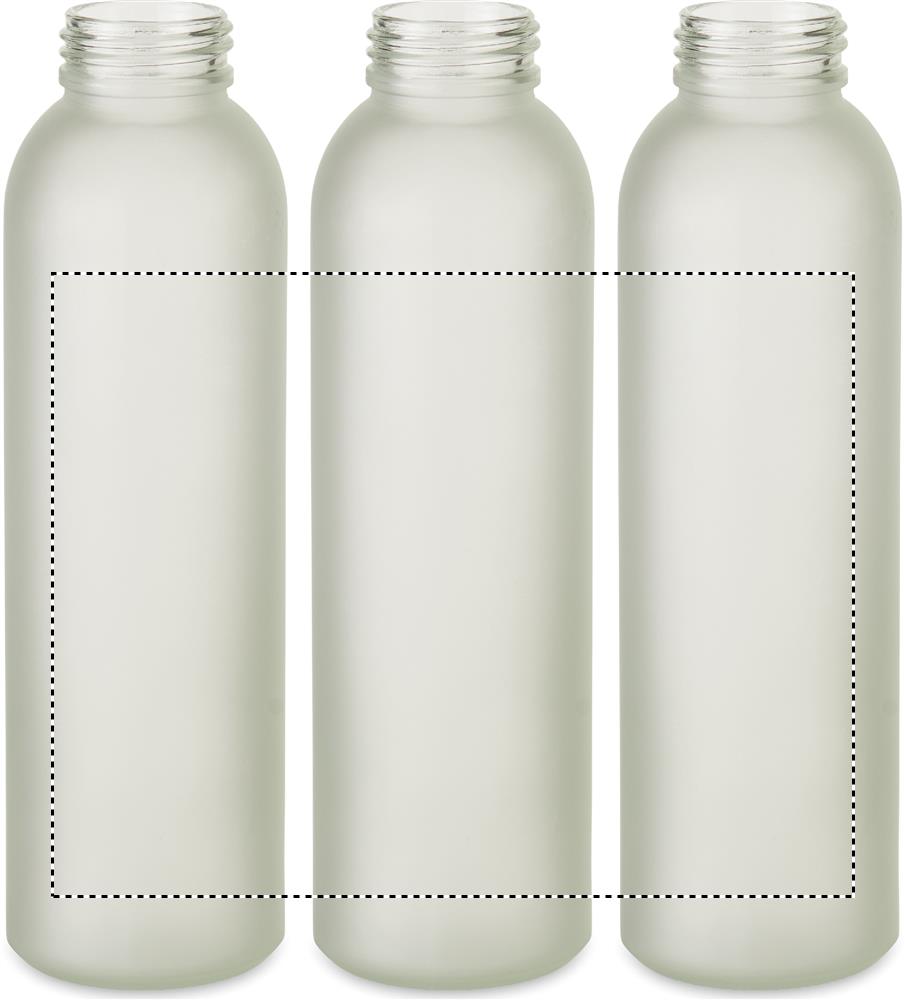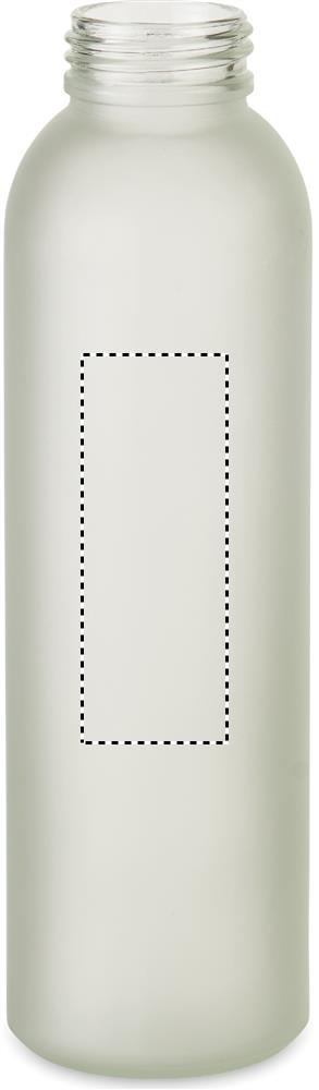 Bottiglia in vetro con rivestimento speciale per la sublimazione. Ha un coperchio in acciaio inossidabile e un laccetto per appenderla. Capacità: 500 ml.