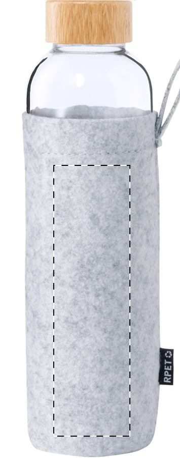 Borraccia in vetro da 500ml. con tappo in bambù e rivestimento in feltro RPET. Non adatta per l'utilizzo con bevande gassate.
