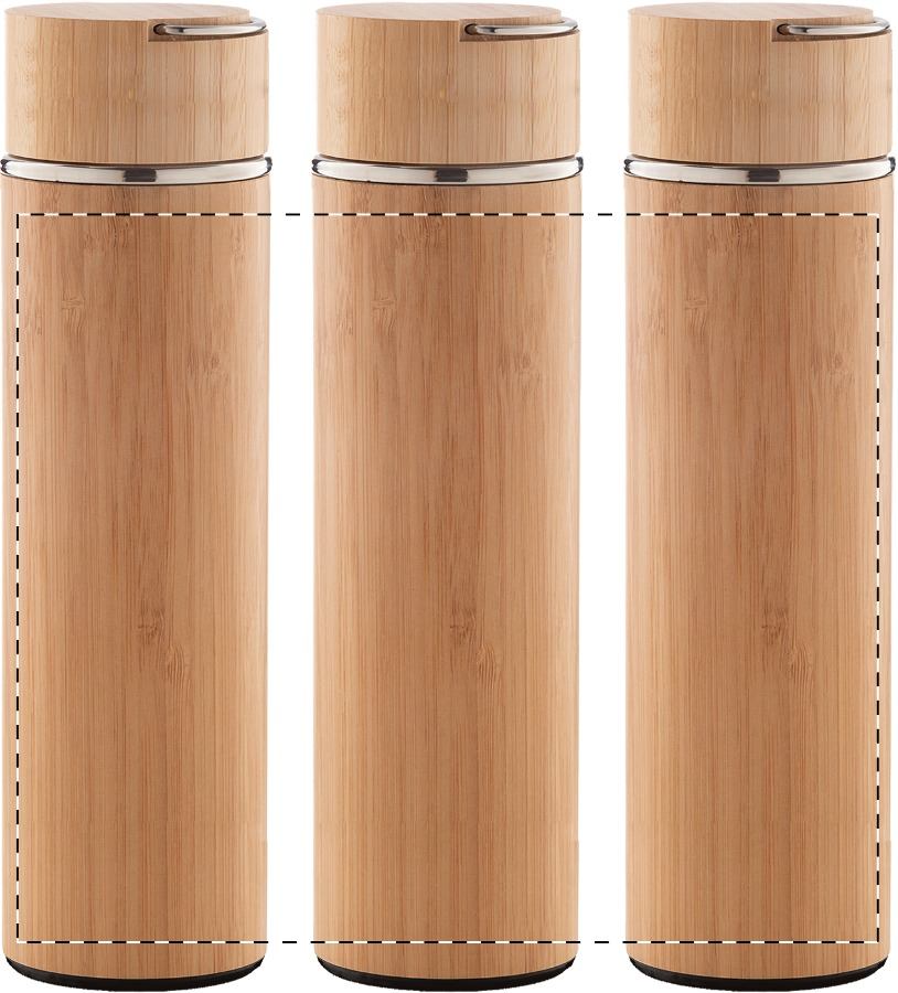 Thermos in acciaio inox doppia parete e bambù, con infusore per il the e coperchio. 450 ml.