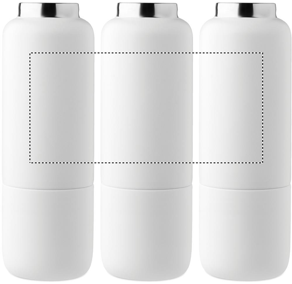 Borraccia isolata a doppio strato in acciaio inox riciclato al 90% e acciaio inox al 10%, con manico a strappo integrato e cinghia lunga (70 cm) aggiuntiva nel coperchio in PP. Senza perdite. Tazza di fondo inclusa. Capacità: 500 ml.