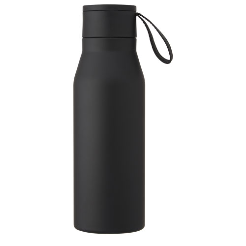Borraccia termica in acciaio inox con isolamento sottovuoto in rame dal design classico ed elegante. Presenta un cinturino e dettagli sul tappo in finta pelle. Queste caratteristiche la rendono ideale per l'incisione laser, che metterà in evidenza il logo in argento creando un elegante effetto visivo. Grazie alla doppia parete in acciaio inossidabile 18/8 e in rame con isolamento sottovuoto, le bevande rimangono calde o fredde per diverse ore. Testata e approvata ai sensi della legislazione tedesca sulla sicurezza alimentare (LFGB) e testata per il contenuto di ftalati secondo il regolamento REACH. Capacità di 500 ml. Fornita in una confezione regalo in cartone riciclato.