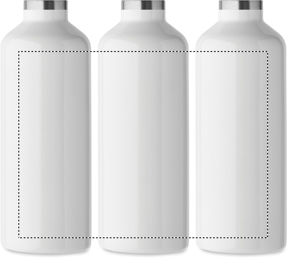Bottiglia isolante a doppio strato in acciaio inox riciclato (90% acciaio inox riciclato e 10% acciaio inox) con coperchio con maniglia a moschettone. Capacità: 500 ml.