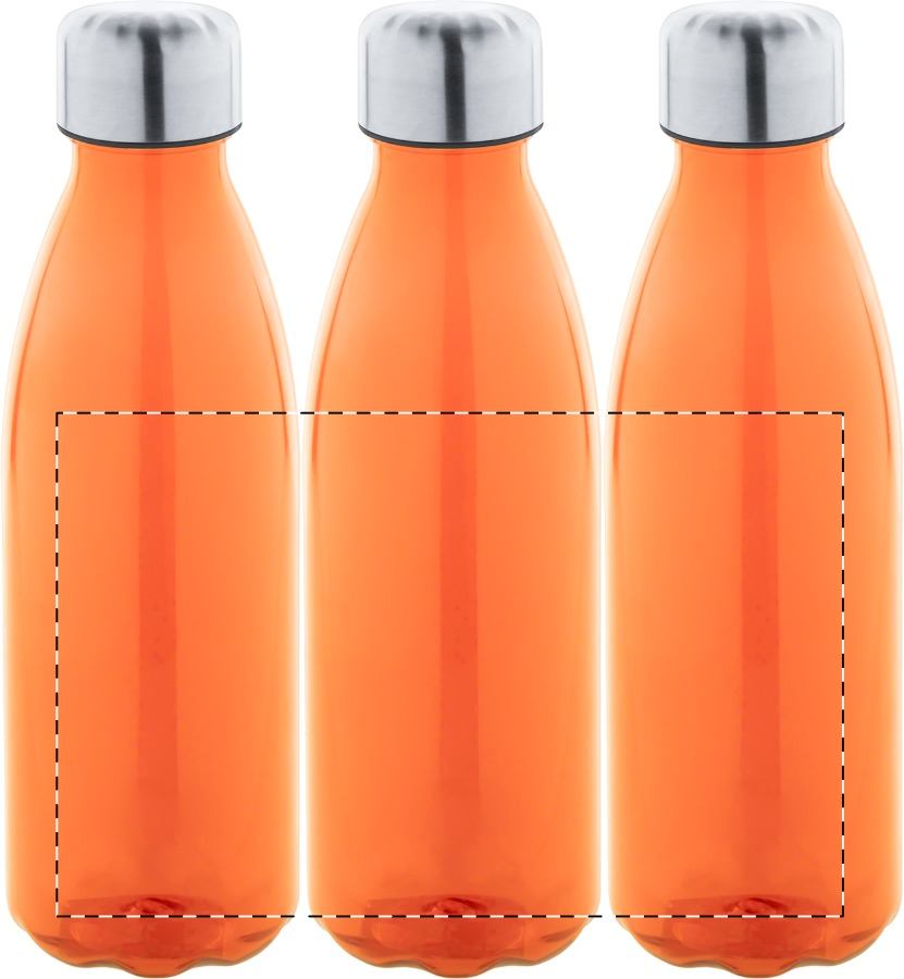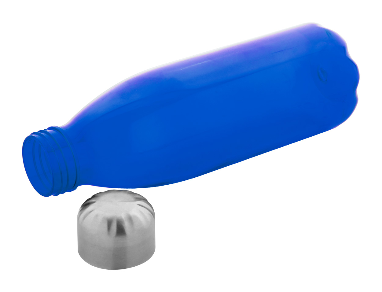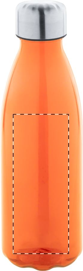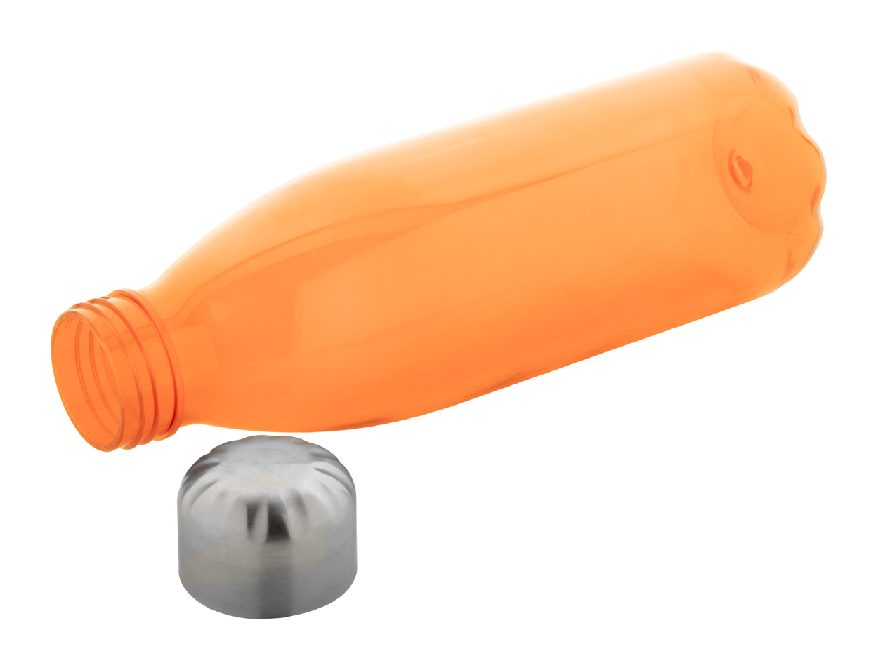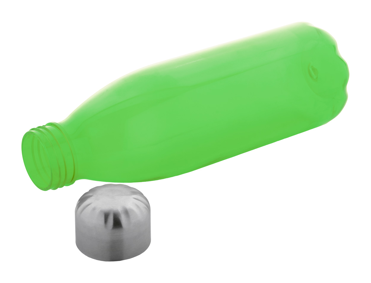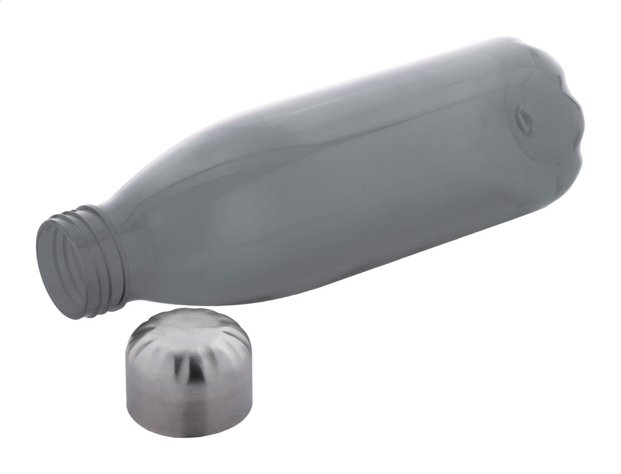 Borraccia da 600 ml. in RPET non contenente BPA, con tappo in acciaio inossidabile. Non adatta per l'utilizzo con bevande gassate.