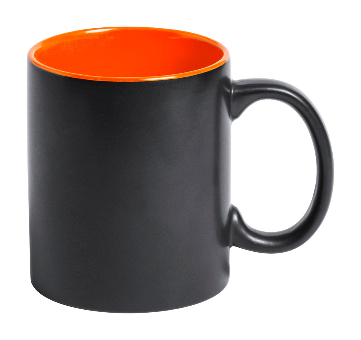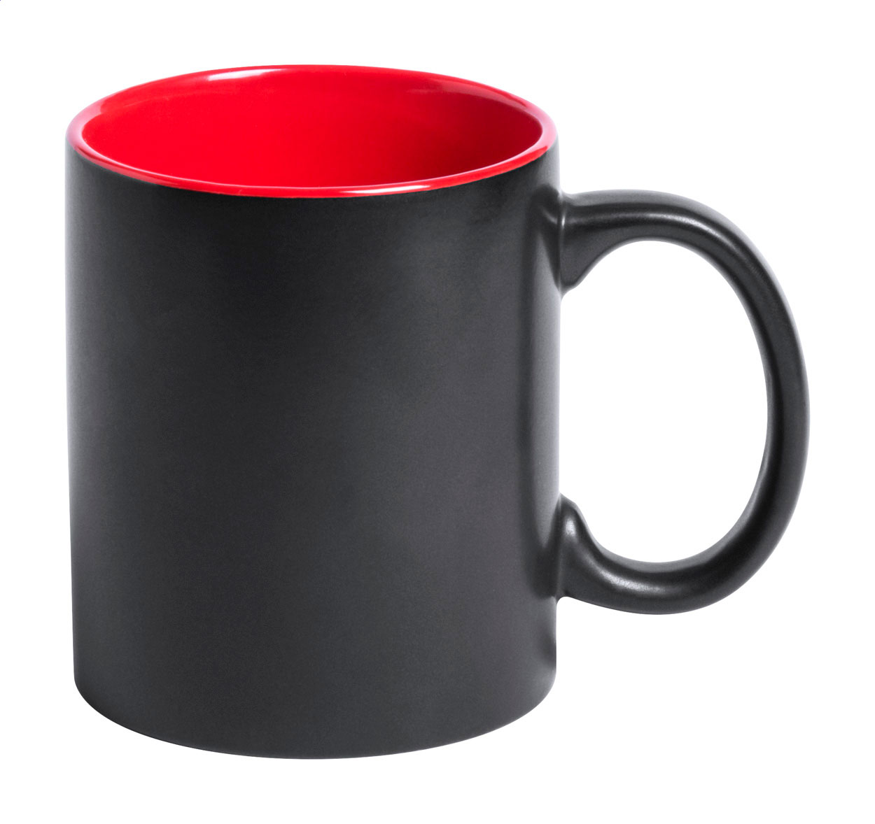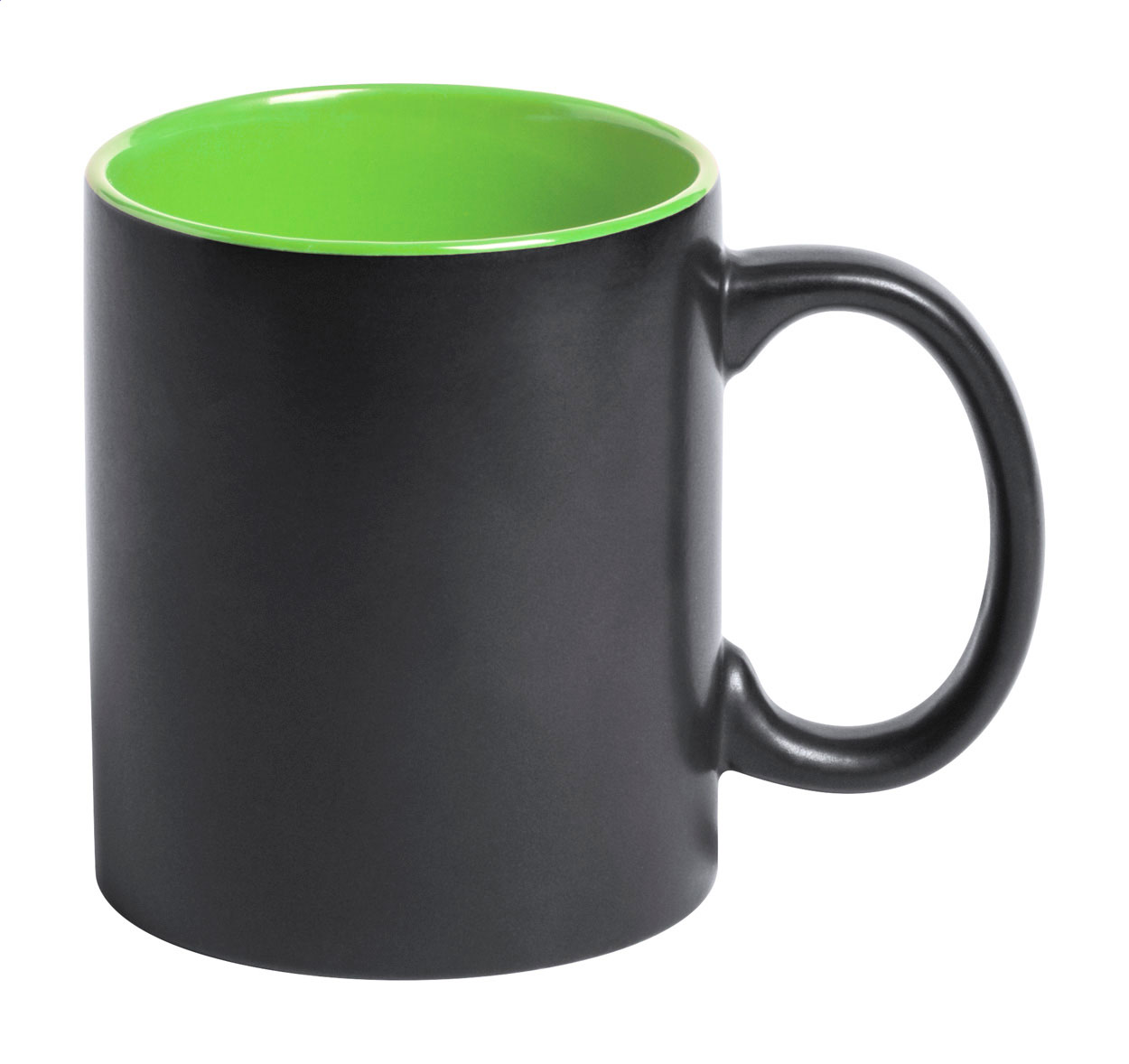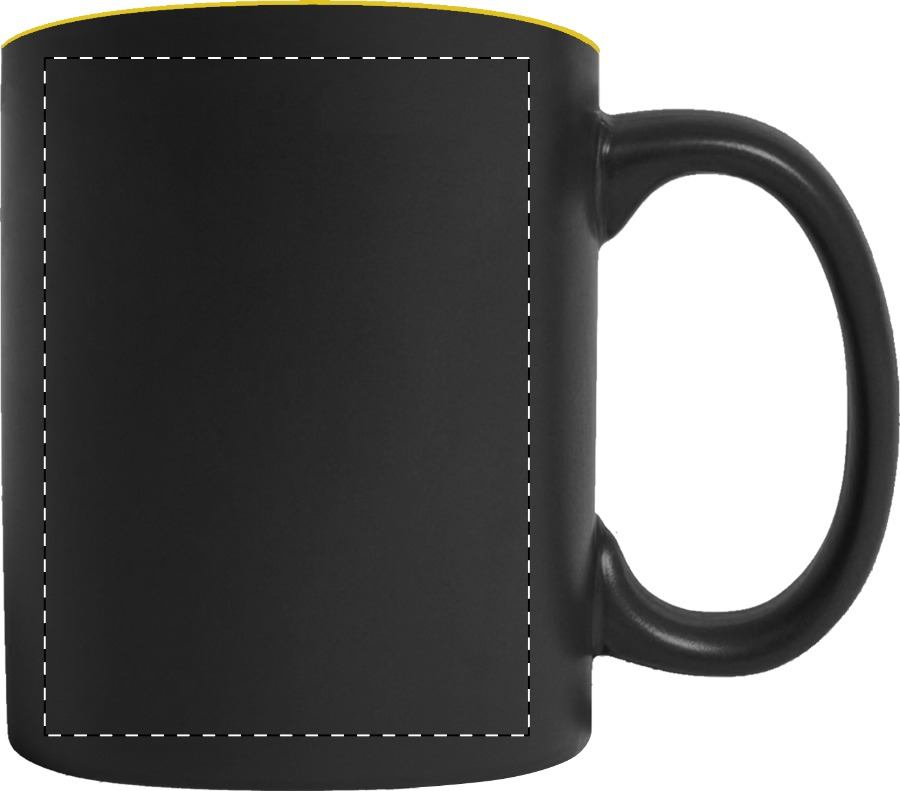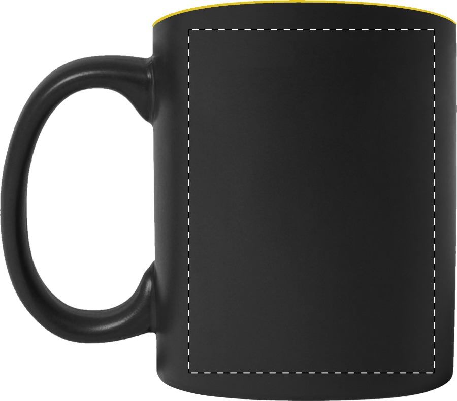 Tazza mug in ceramica nera da 350 ml. con interno colorato e speciale rivestimento esterno ideale per l'incisione; il logo inciso avrà lo stesso colore dell'interno della tazza. Fornita in confezione regalo.