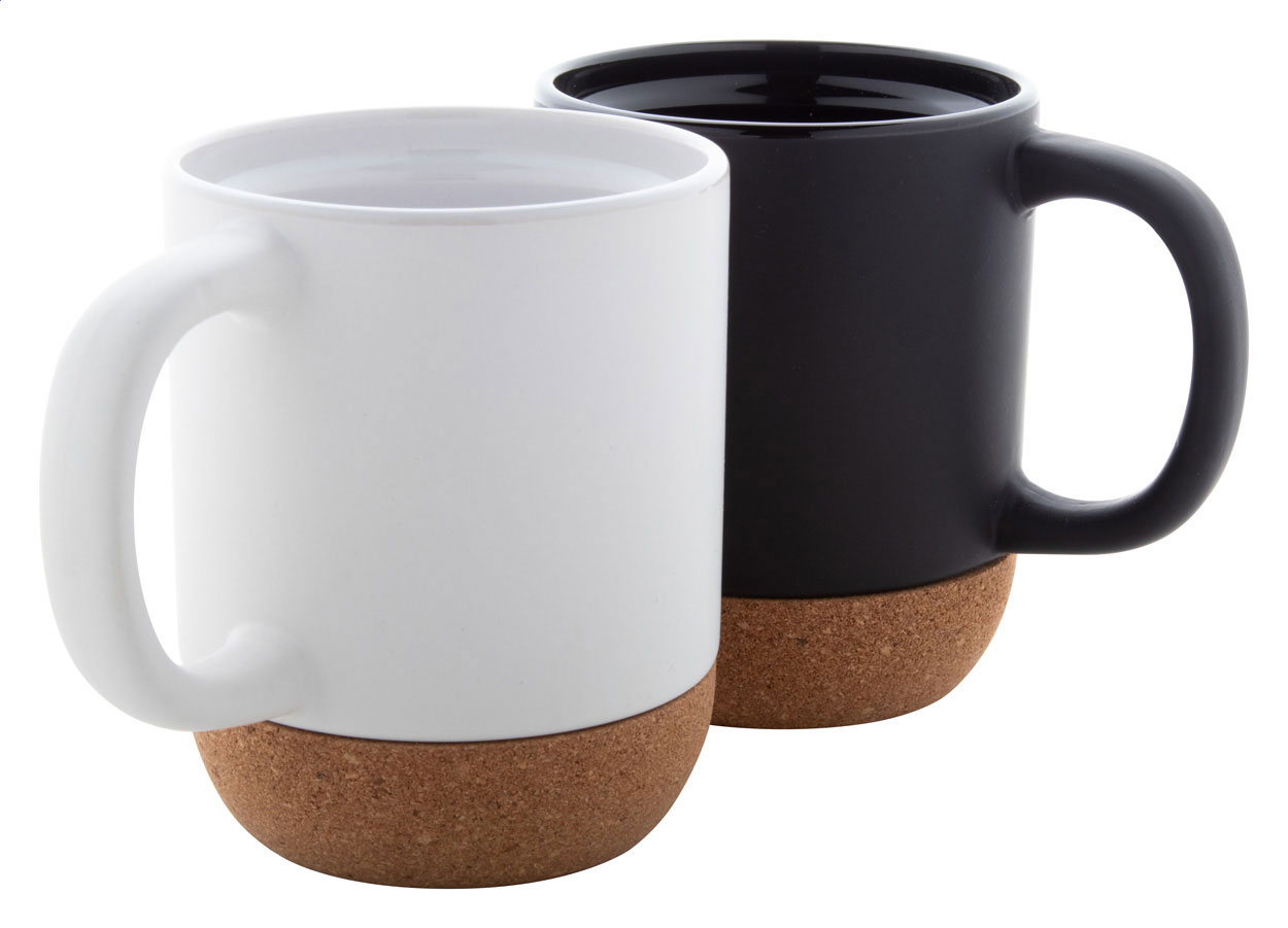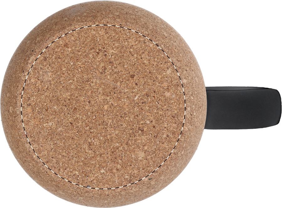 Tazza in ceramica da 420 ml. con base in sughero naturale. Fornita in confezione di cartoncino kraft.
