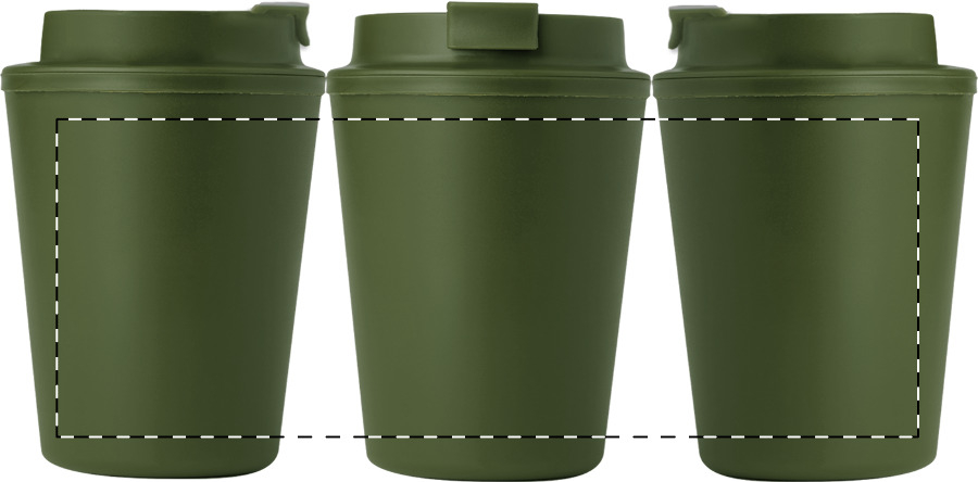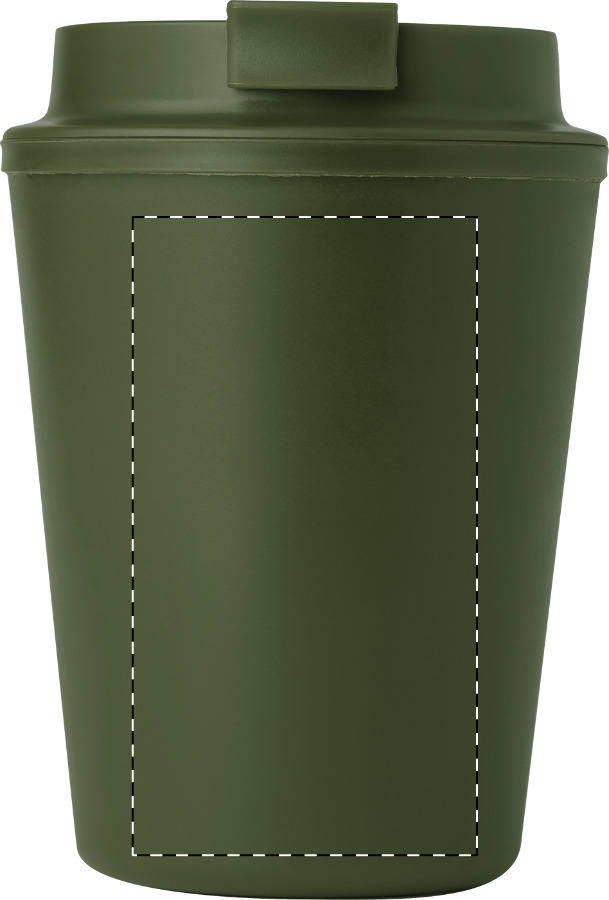 Bicchiere termico da 300 ml. in plastica PP riciclata a doppia parete, con coperchio erogatore.