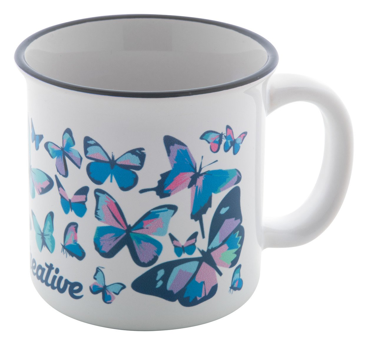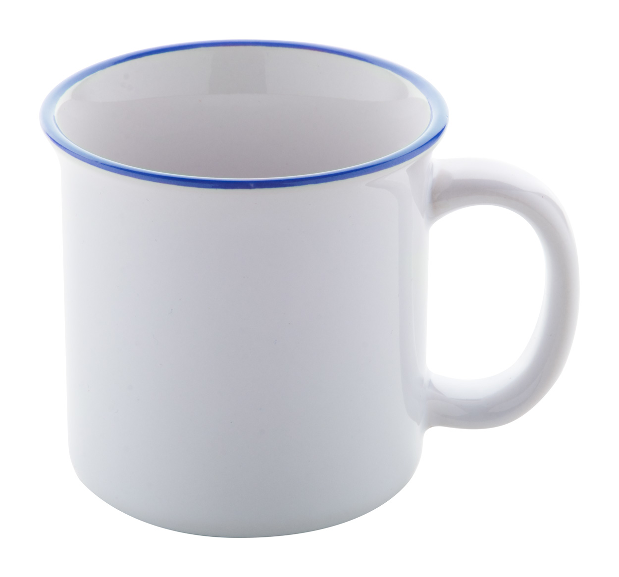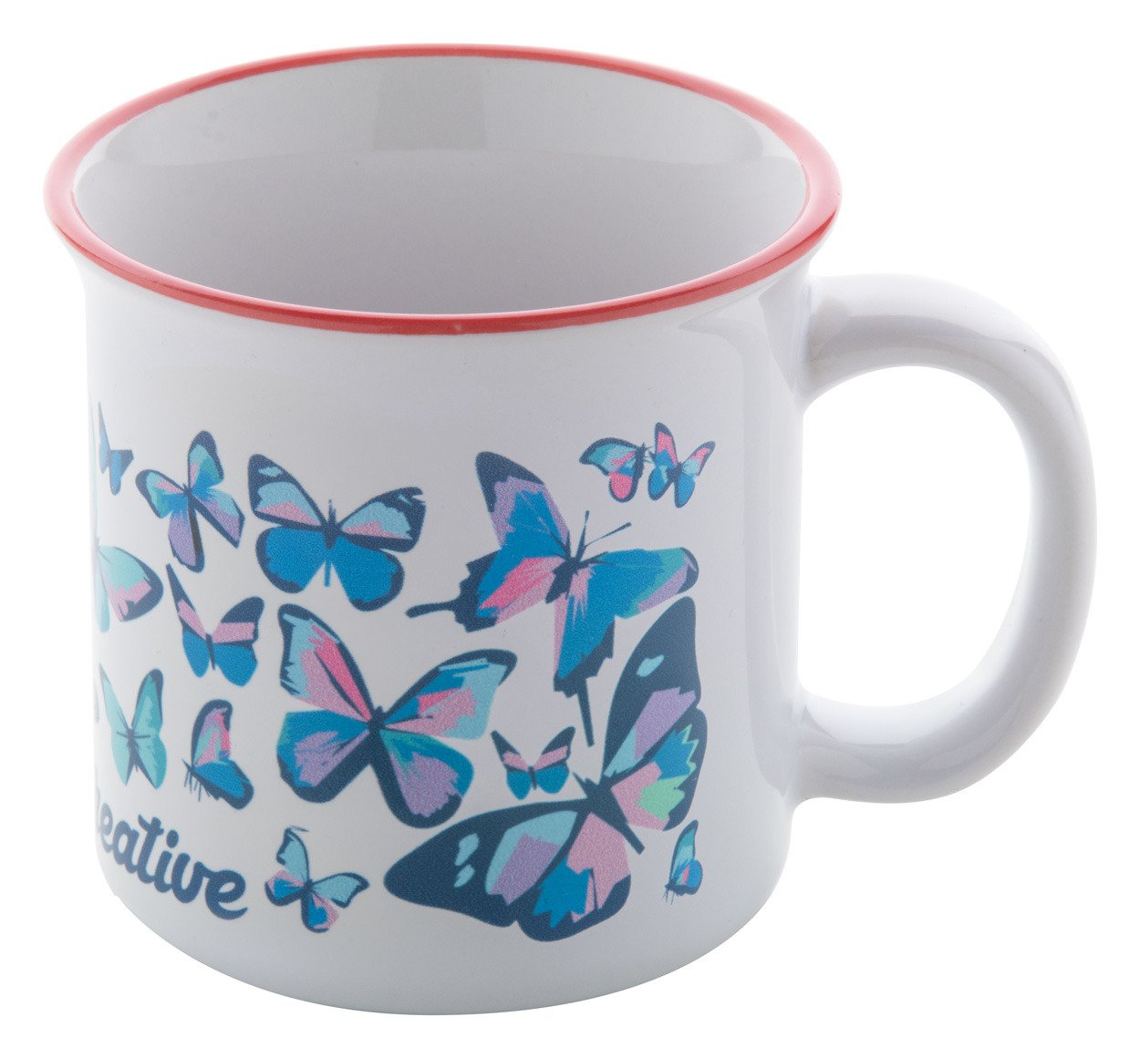 Tazza in ceramica 300 ml. in stile vintage con bordo colorato, adatta per la stampa in sublimazione. Confezione regalo.