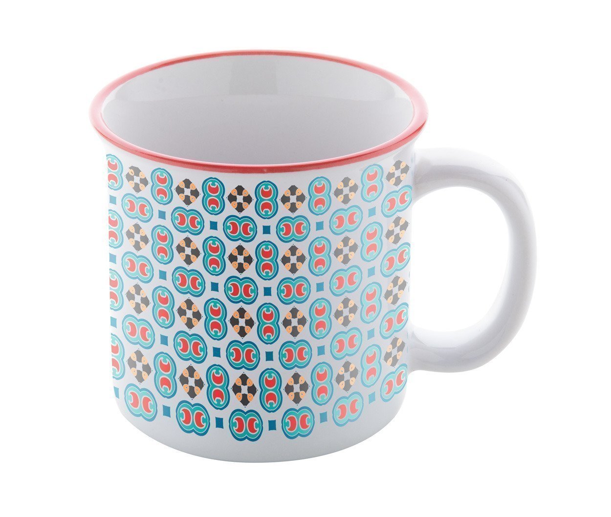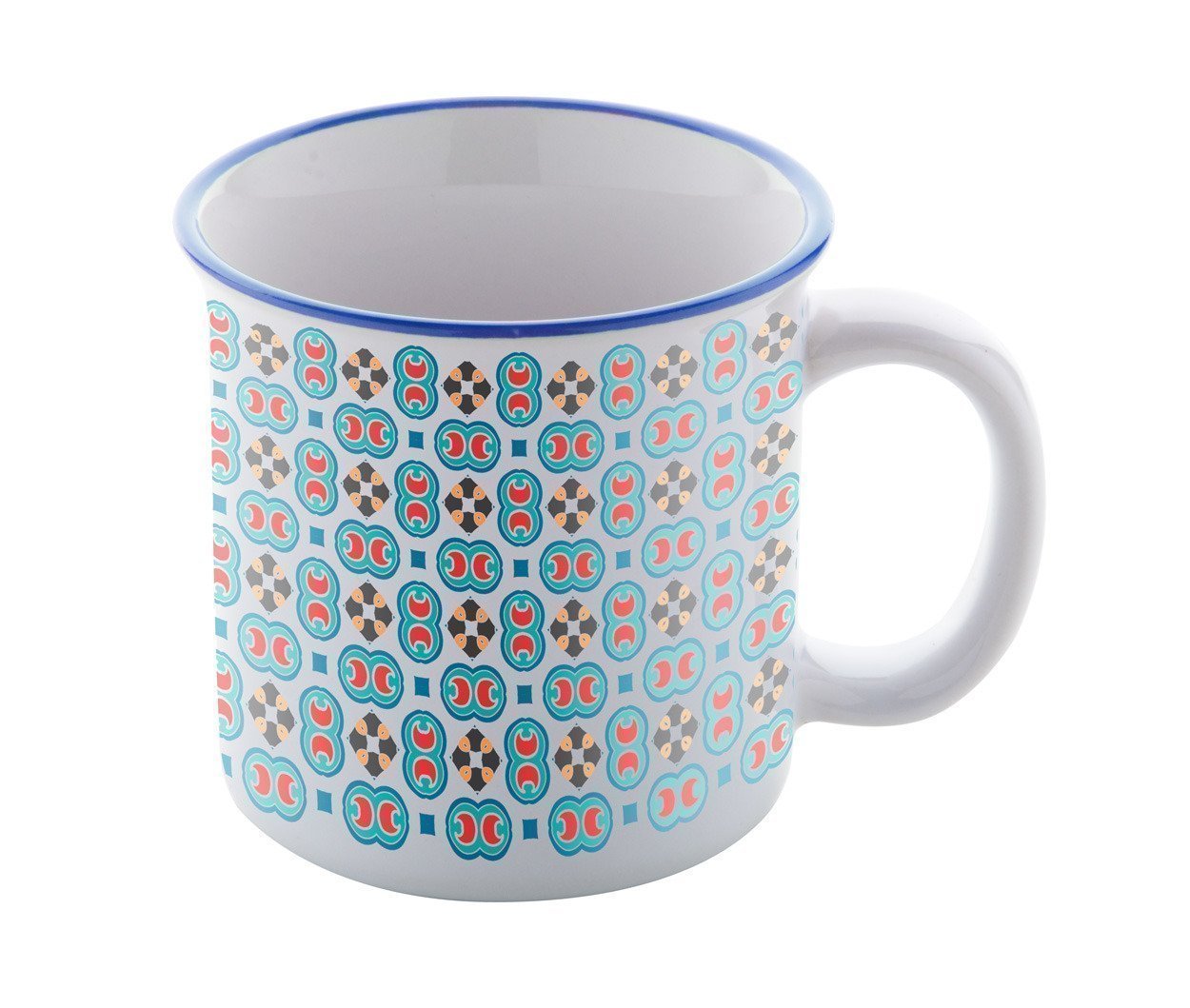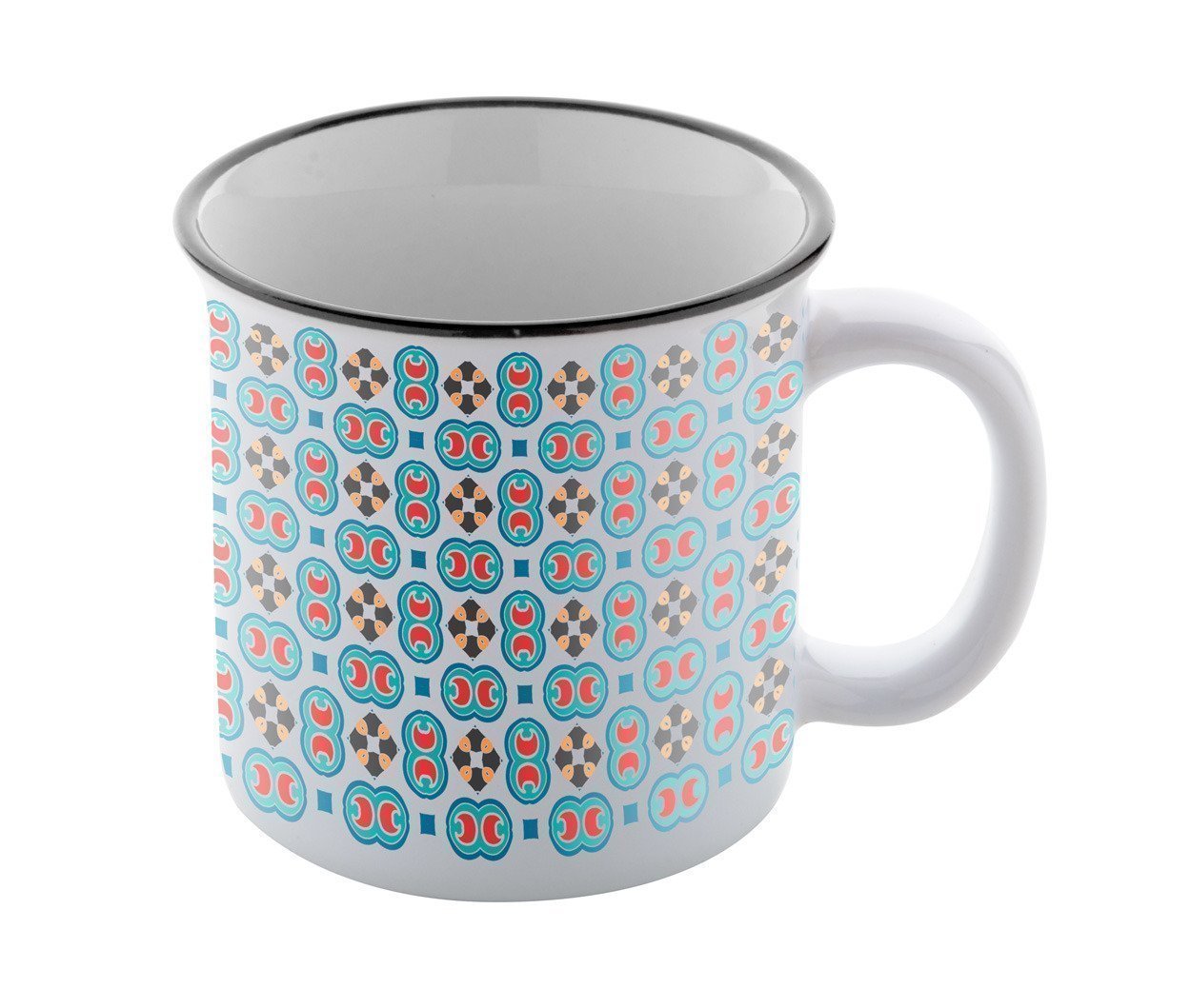 Tazza in ceramica 300 ml. in stile vintage con bordo colorato, adatta per la stampa in sublimazione. Confezione regalo.