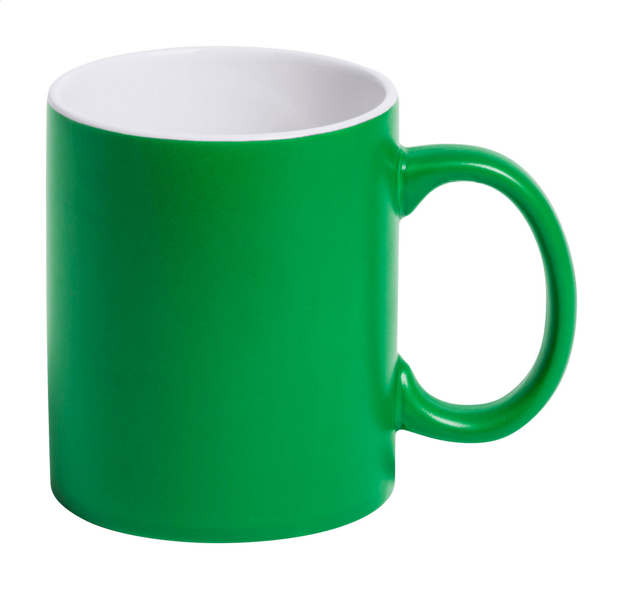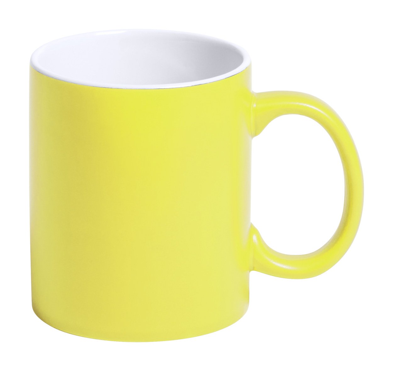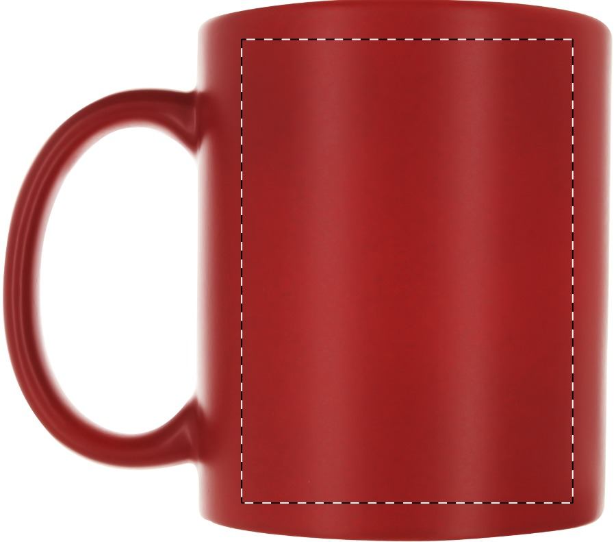 Tazza in ceramica colorata da 350 ml. con interno bianco e speciale rivestimento esterno ideale per incisione; il logo inciso avrà lo stesso colore dell'interno della tazza. Fornita in confezione regalo.