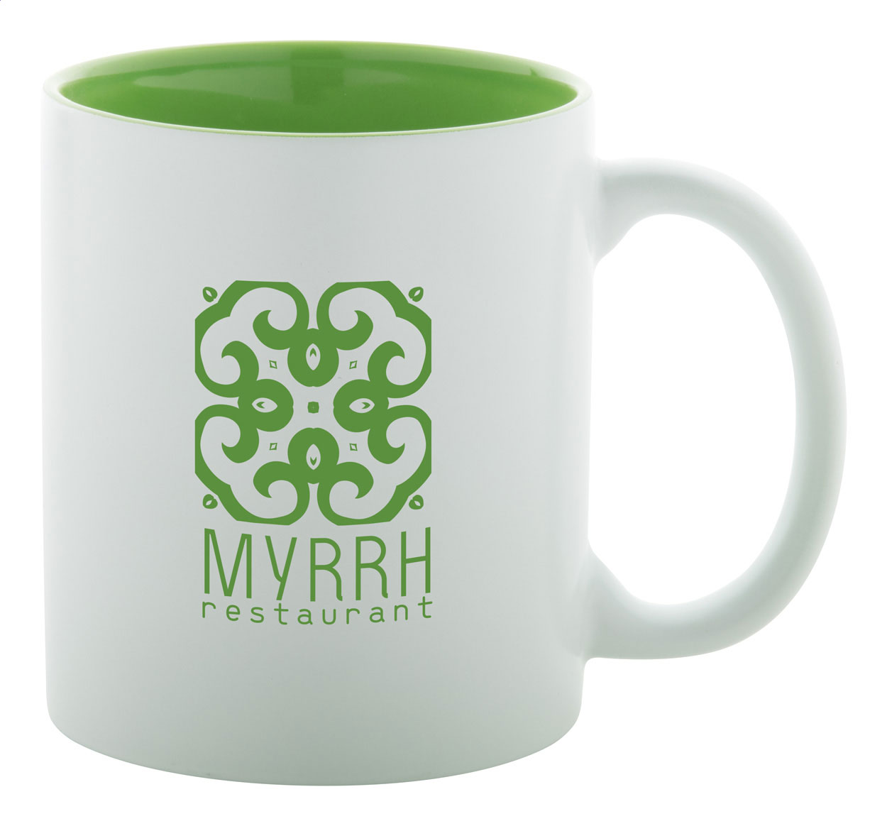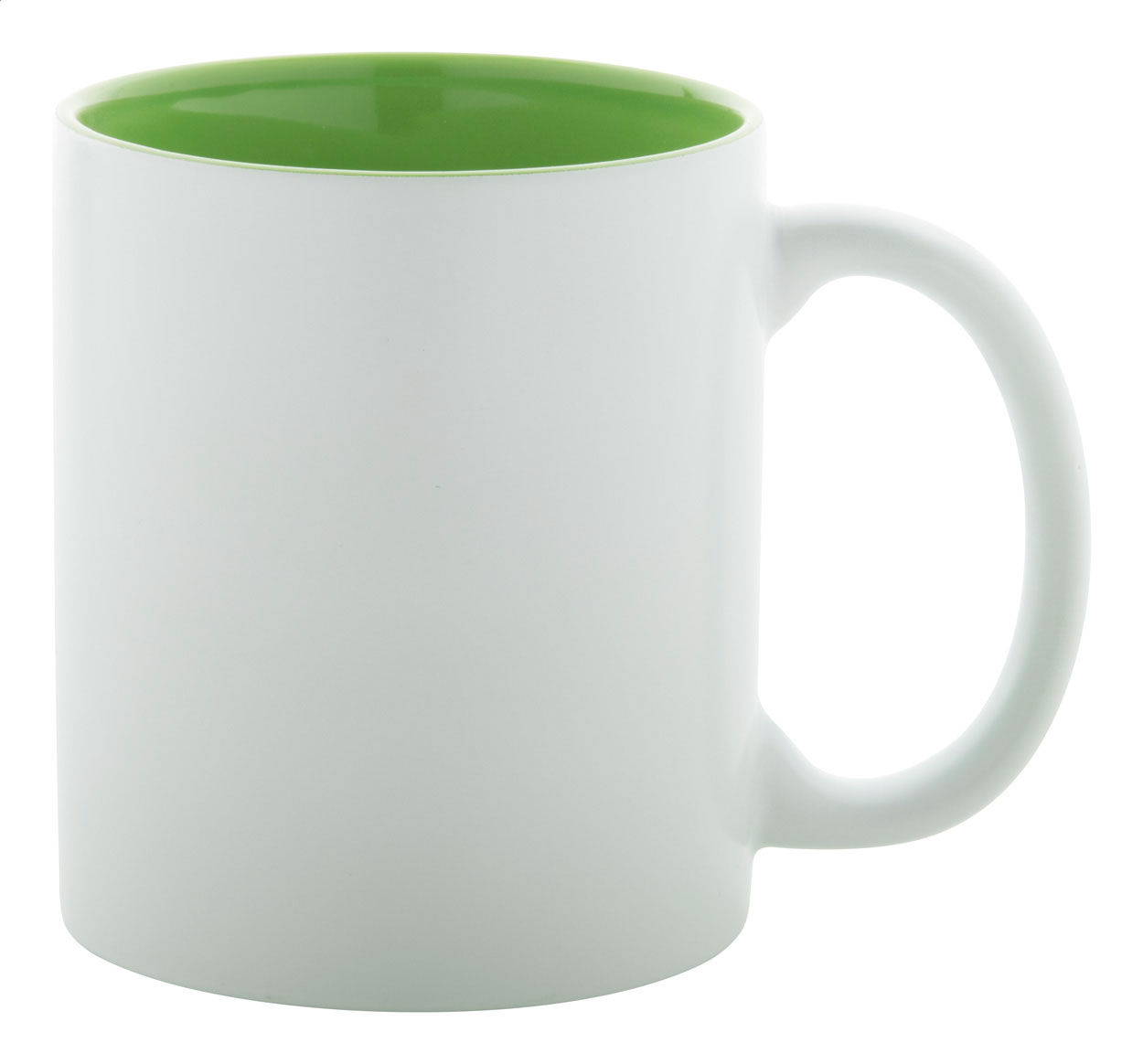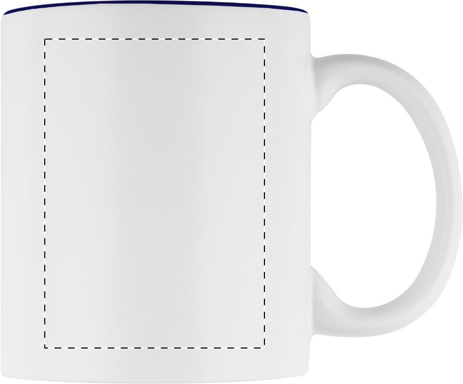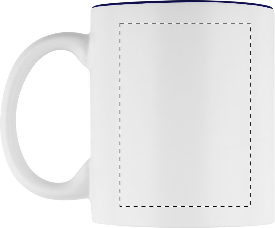 Tazza in ceramica bianca da 350 ml. con interno colorato e speciale rivestimento esterno ideale per incisione; il logo inciso avrà lo stesso colore dell'interno della tazza. Fornita in confezione regalo.