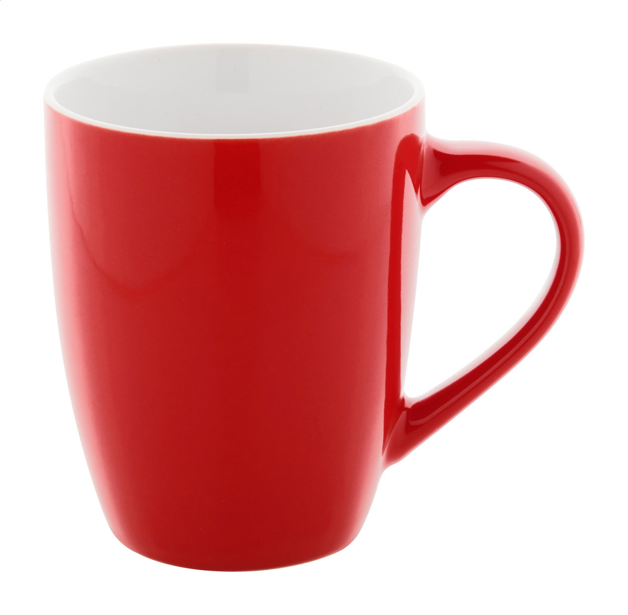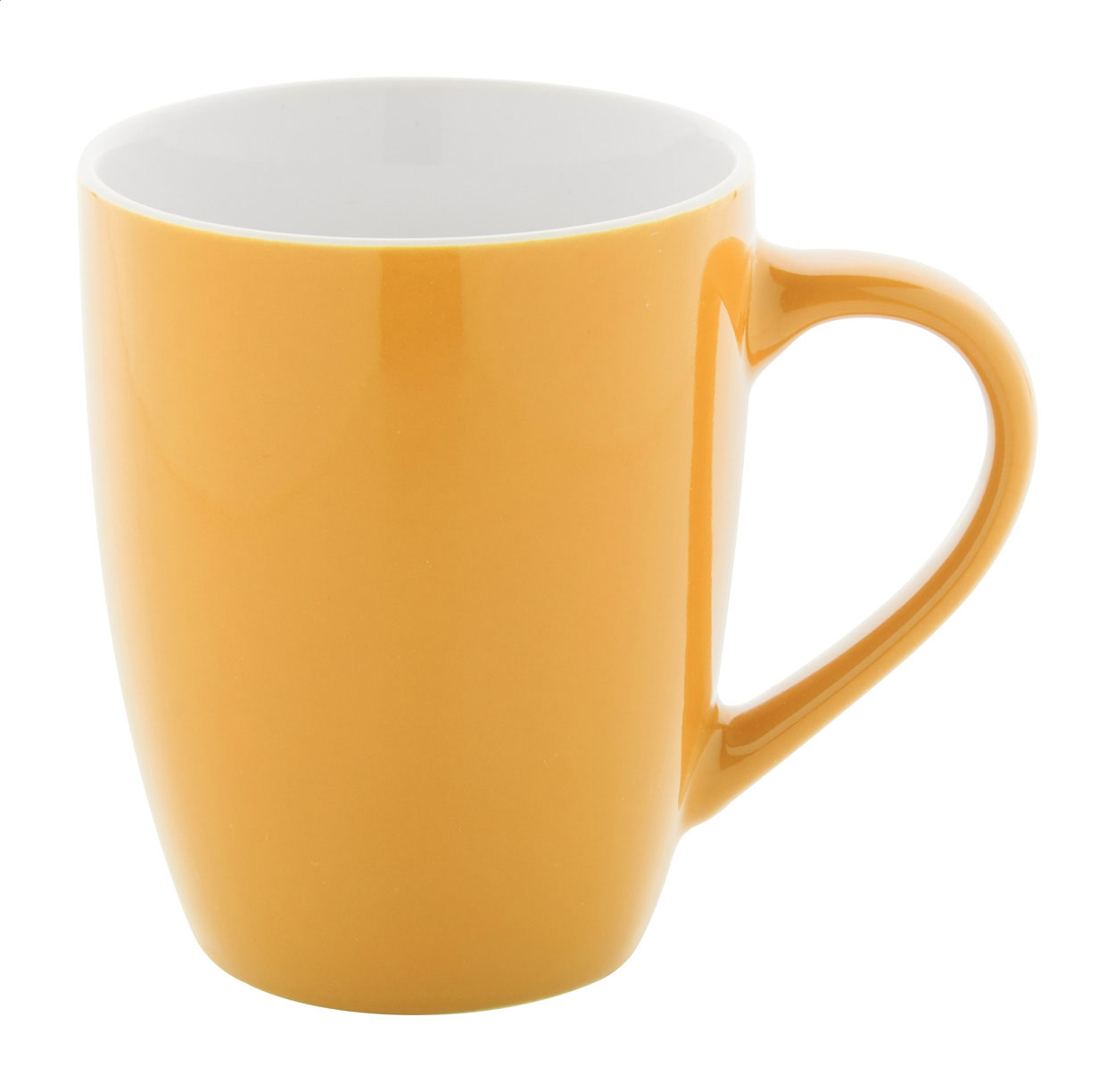 Tazza in ceramica colorata di alta qualità da 340 ml con interno bianco, confezionata in scatola di cartoncino kraft