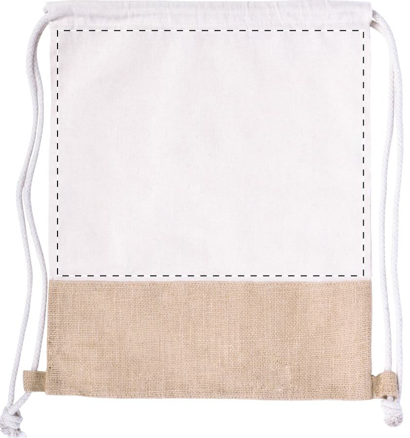 Sacca con chiusura a coulisse in cotone (120 g/m²) e juta.