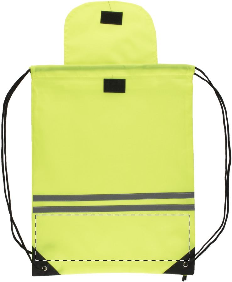 Sacca alta visibilità, con chiusura a coulisse, 2 bande riflettenti e ulteriore chiusura in velcro. Solo per uso promozionale, il prodotto non può essere considerato un dispositivo di protezione personale.