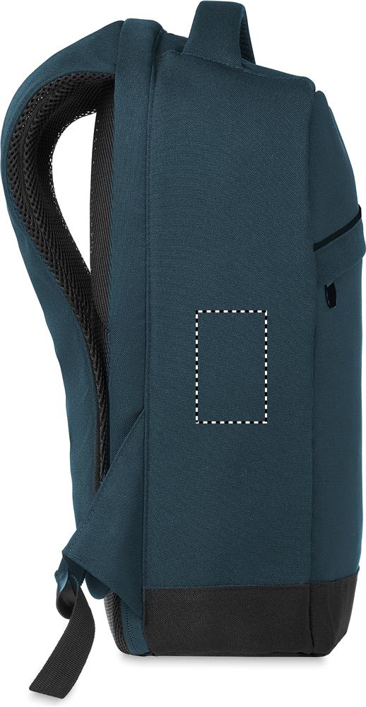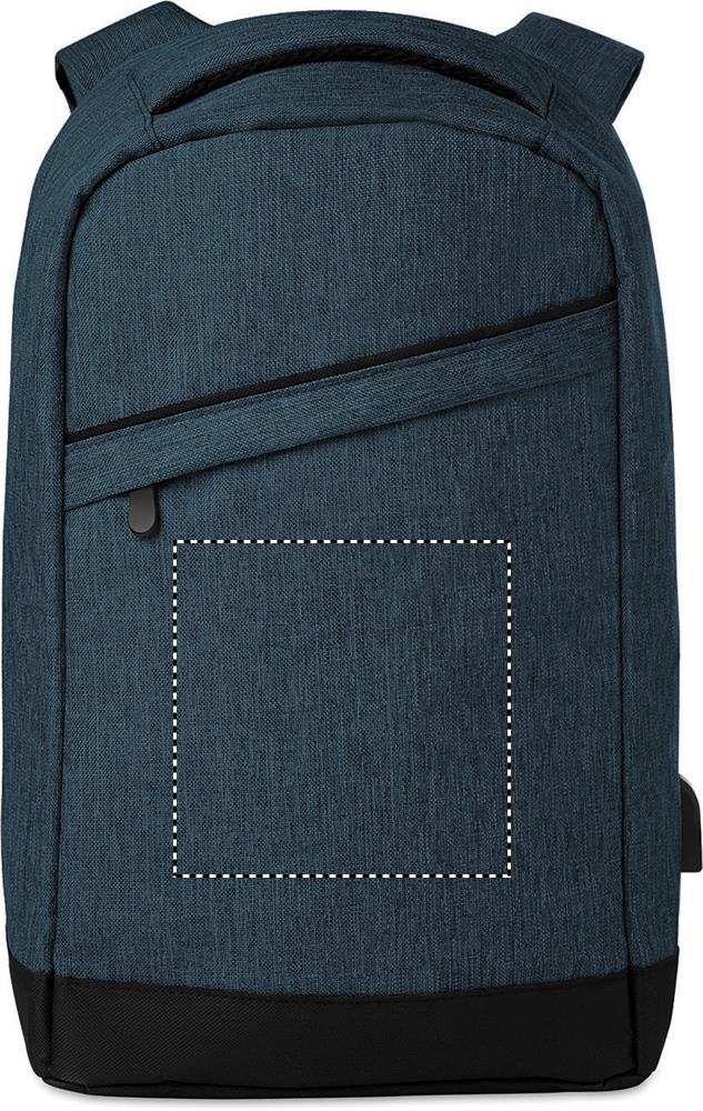 Zaino bicolore in poliestere 600D con schienale rinforzato e comparto interno per laptop 13 inch, cavo di ricarica USB. Zip nascoste sul retro per protezione dai furti.