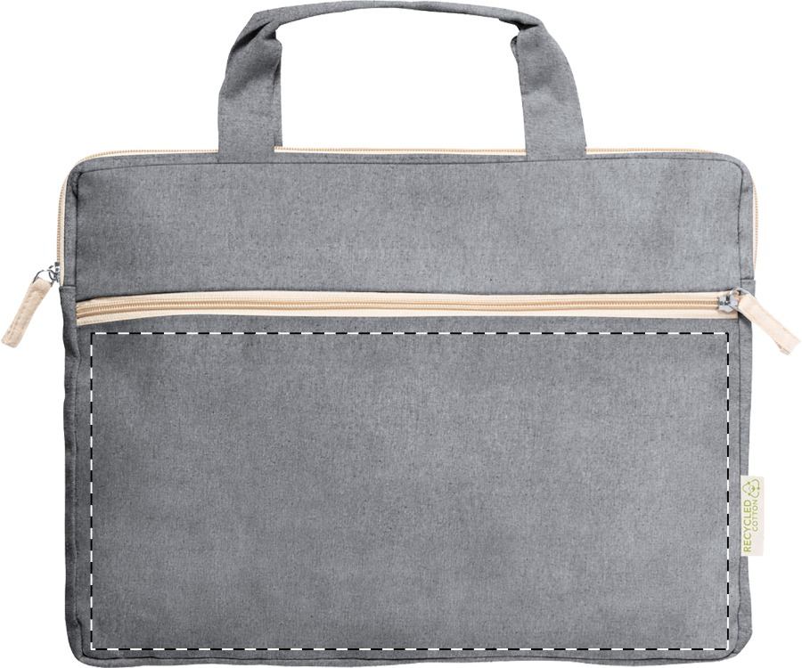 Borsa portadocumenti in cotone riciclato con scomparto e chiusura a zip ed etichetta identificativa cotone riciclato. 100% cotone riciclato, 275 g/m².