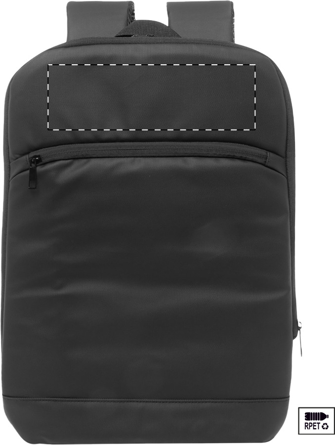 Zaino impermeabile estensibile in poliestere 600D RPET con rivestimento in PU, con scomparto principale e tasca frontale chiusi da cerniera, scomparto imbottito per laptop (15"), cinghia trolley, schienale e spallacci imbottiti ed etichetta RPET.