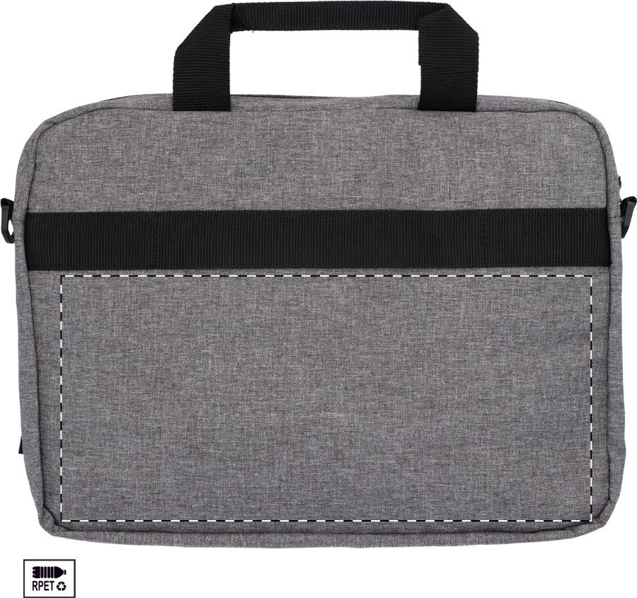Borsa portadocumenti in poliestere 600D RPET con cerniera sulla tasca principale, tracolla regolabile, fascia trolley, scomparti imbottiti per laptop (15") e tablet (10").