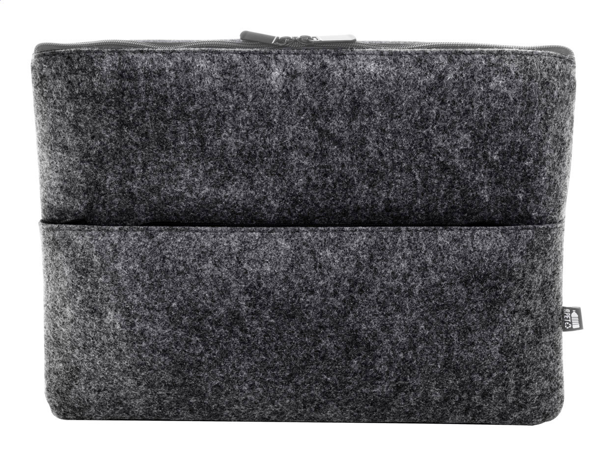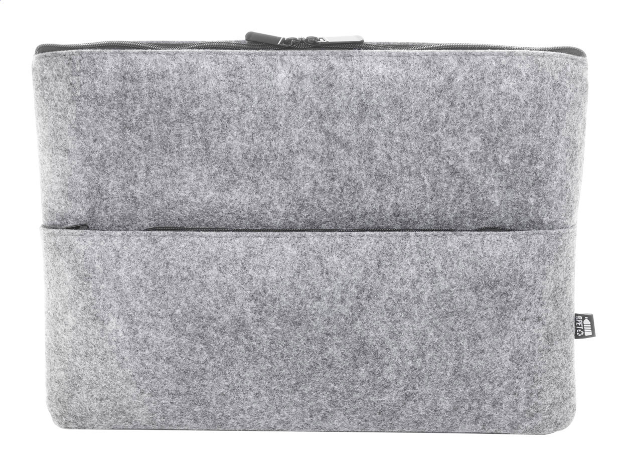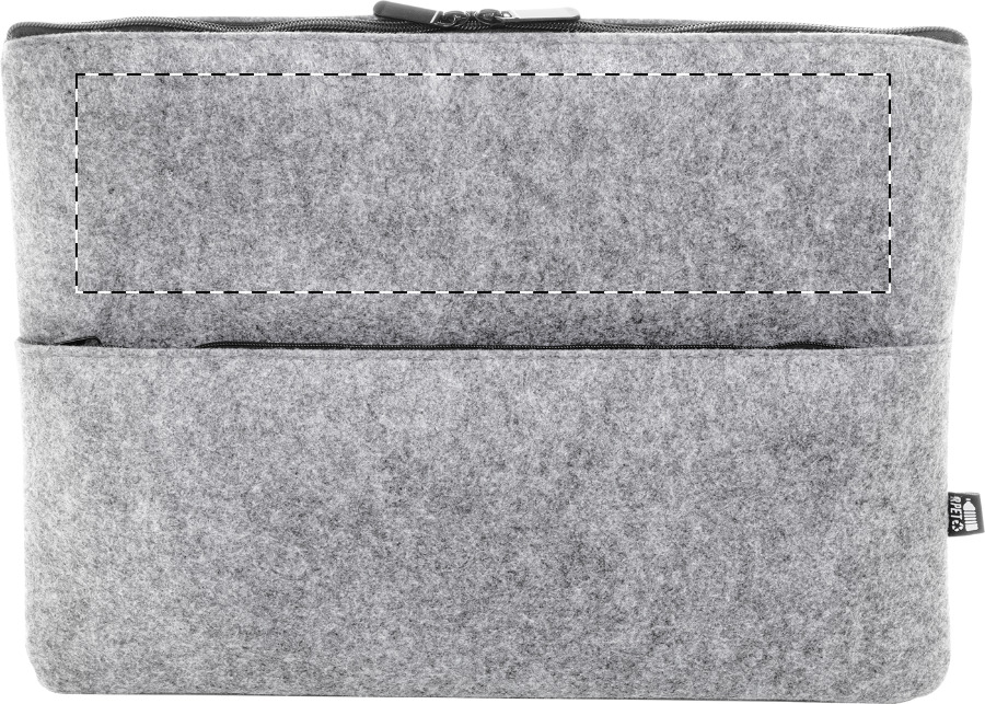 Borsa per notebook in feltro RPET con scomparto chiuso da cerniera e tasca frontale. Adatta a computer portatili fino a 15”. Con etichetta distintiva RPET.
