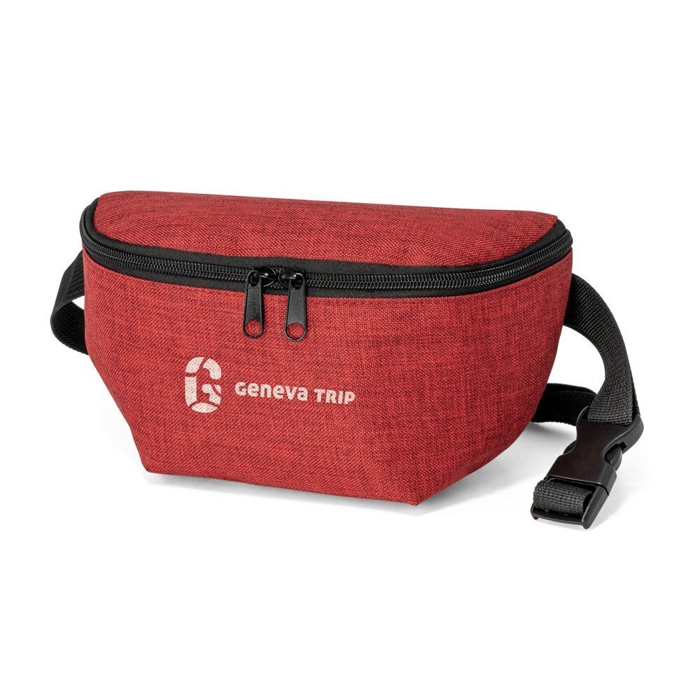 Marsupio 600D ad alta densità. Scomparto principale e cerniera sul retro. La borsa ha una tracolla in tessuto regolabile.220 x 120 mm